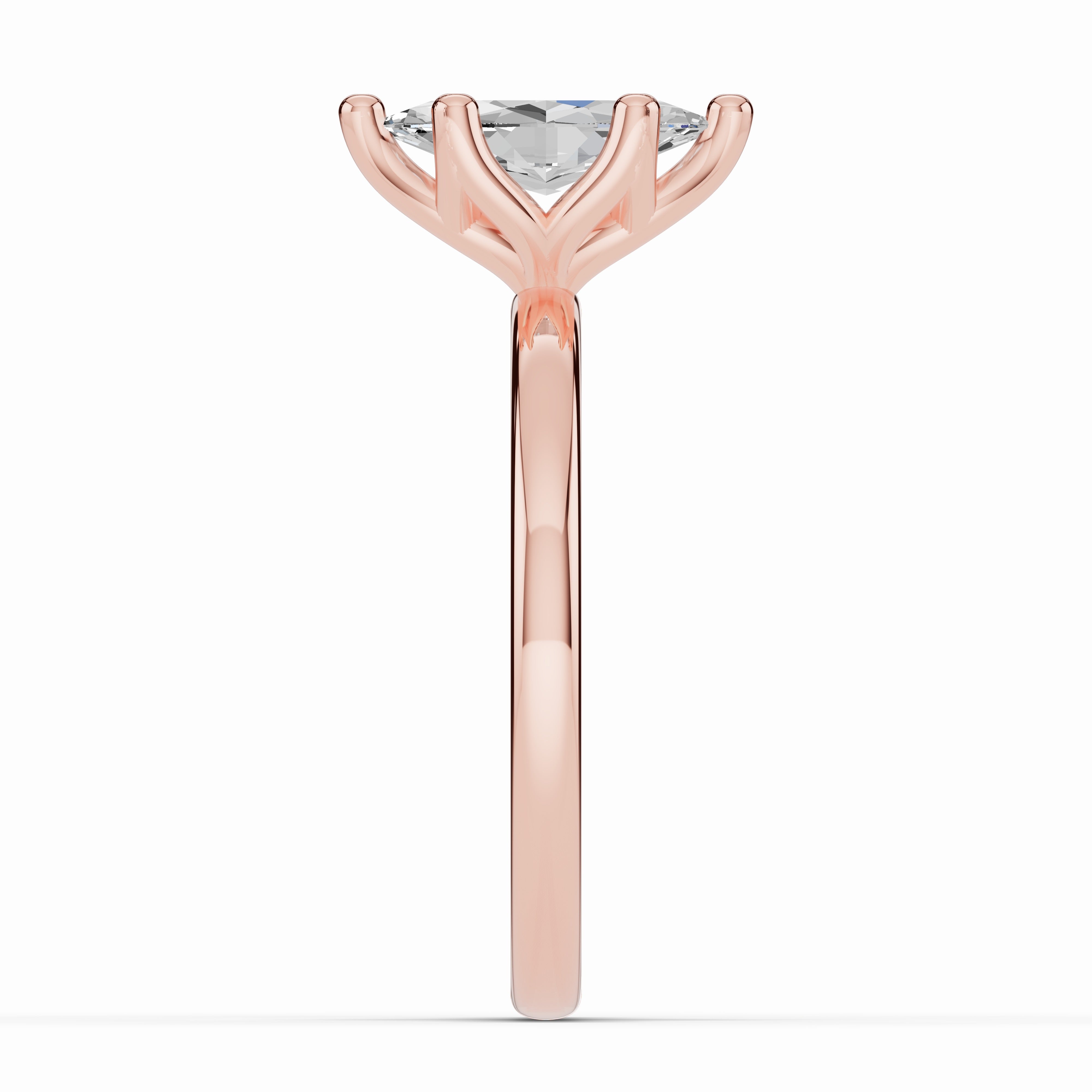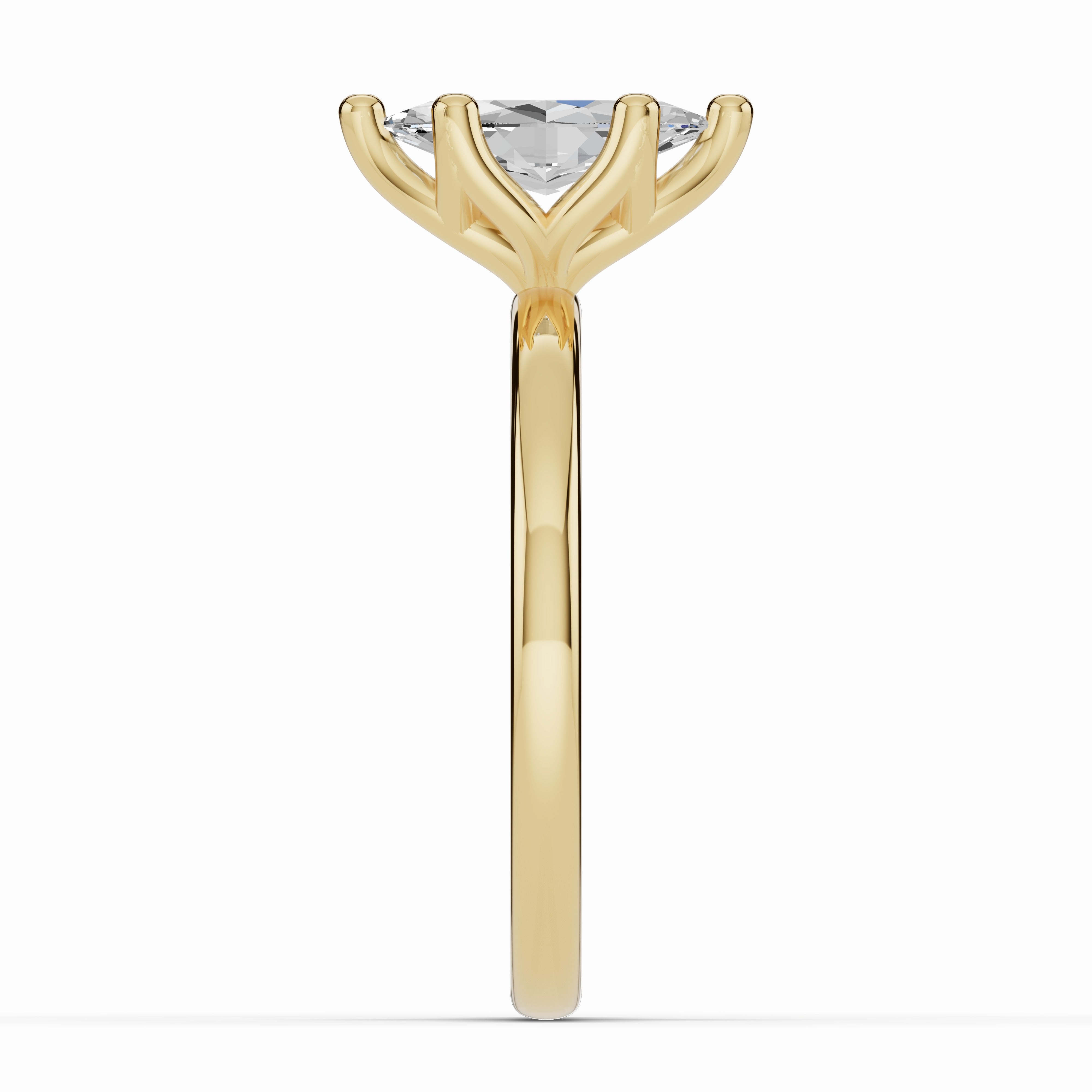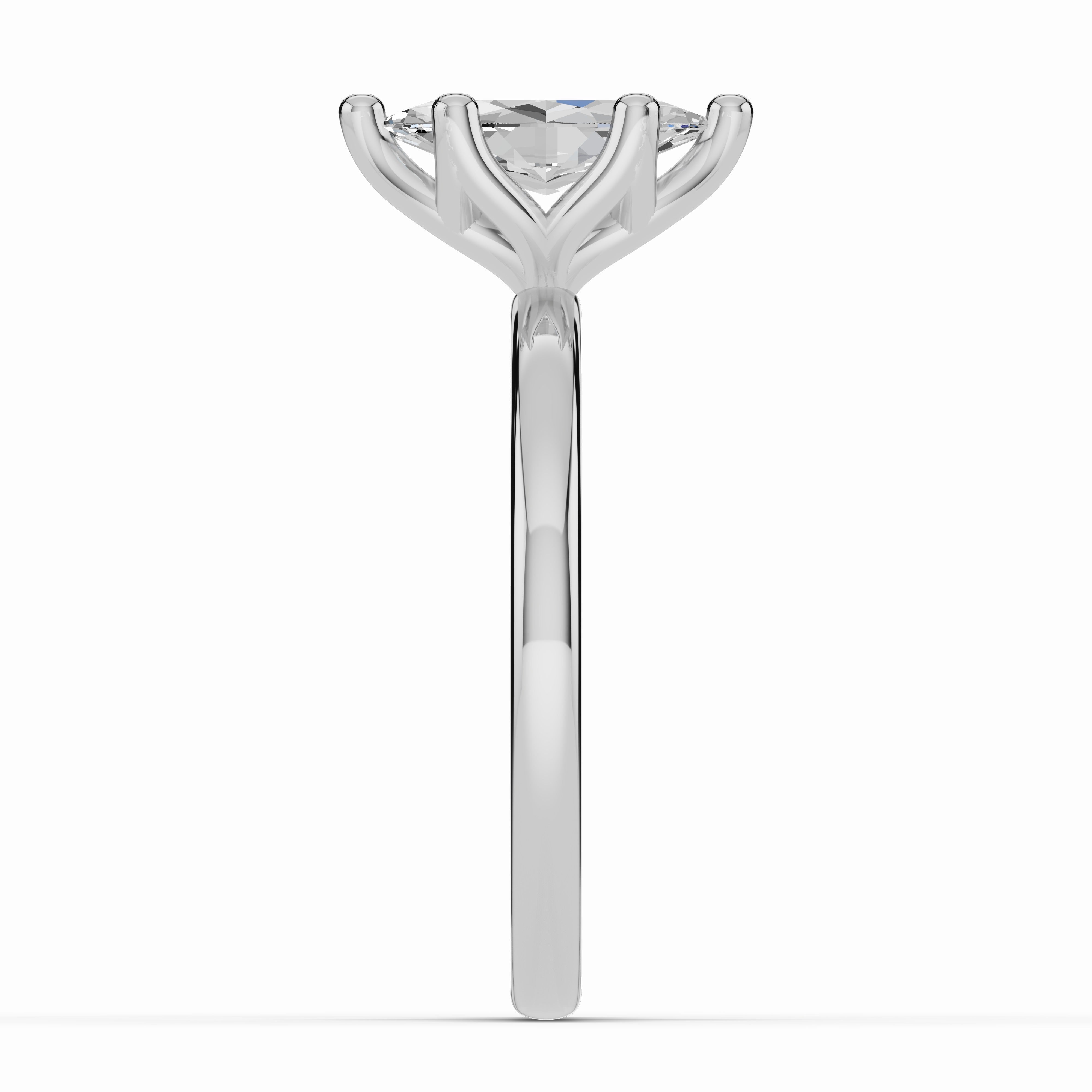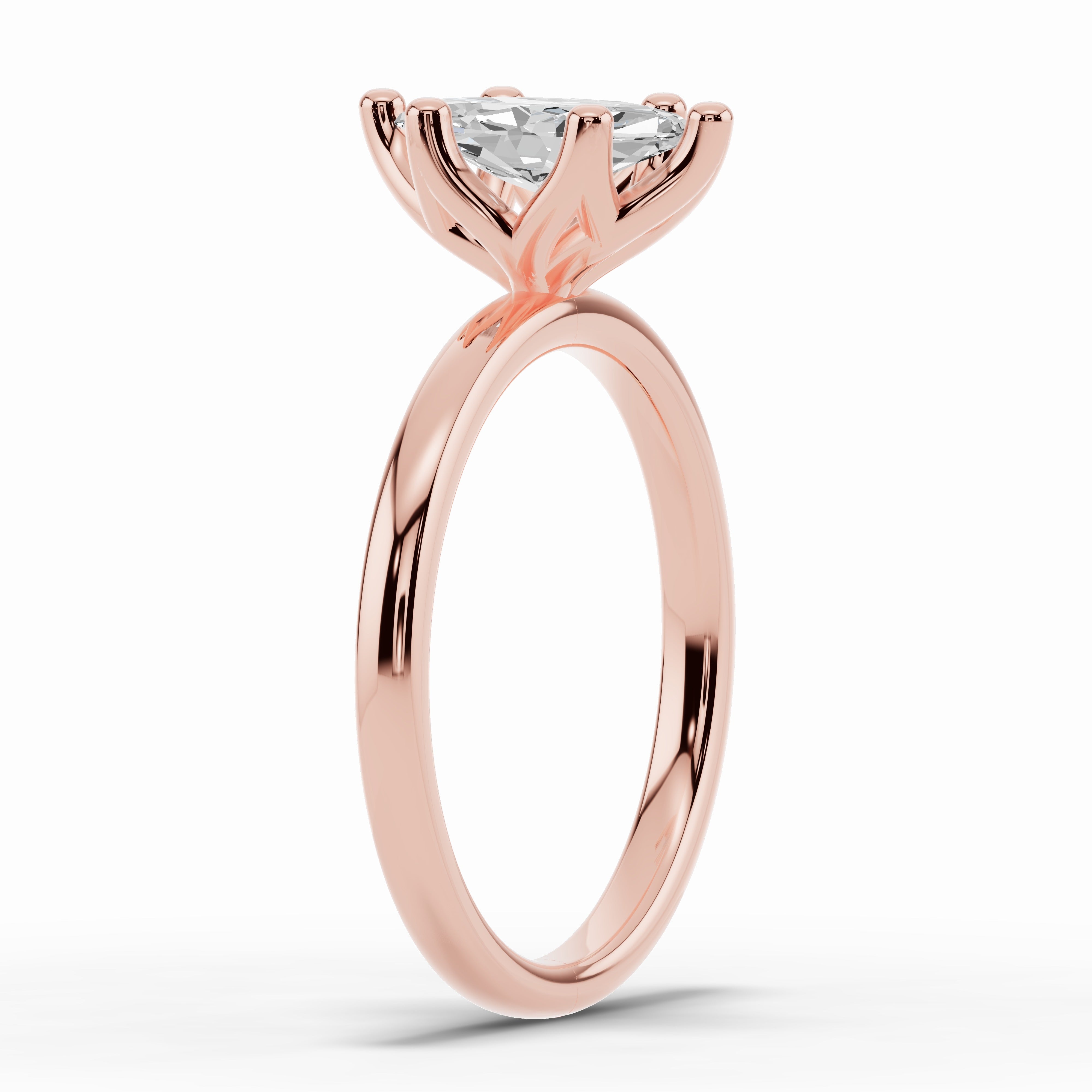 The Lustre Solitaire can be customized with center stones ranging from 1 to 5 carats, each accompanied by an IGI certificate for quality assurance. Its sophisticated silhouette makes it a perfect match for stacking with wedding bands or wearing alone as a bold, elegant statement.