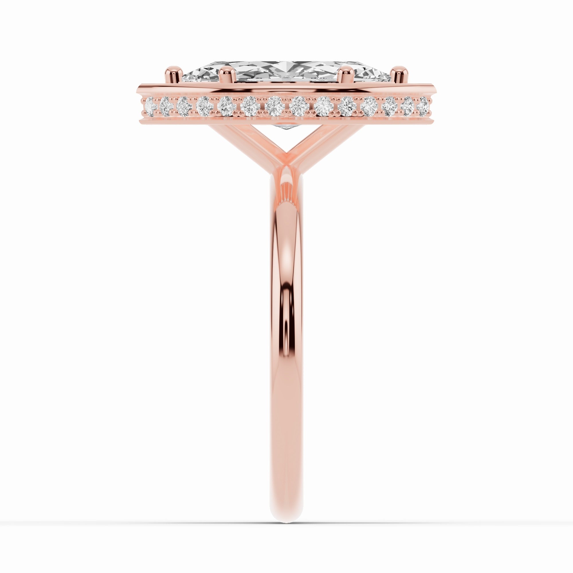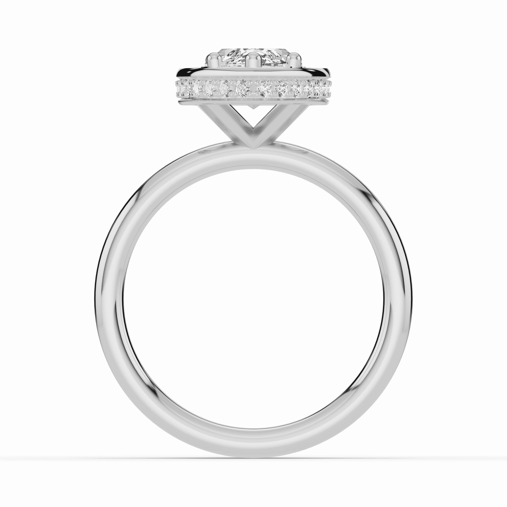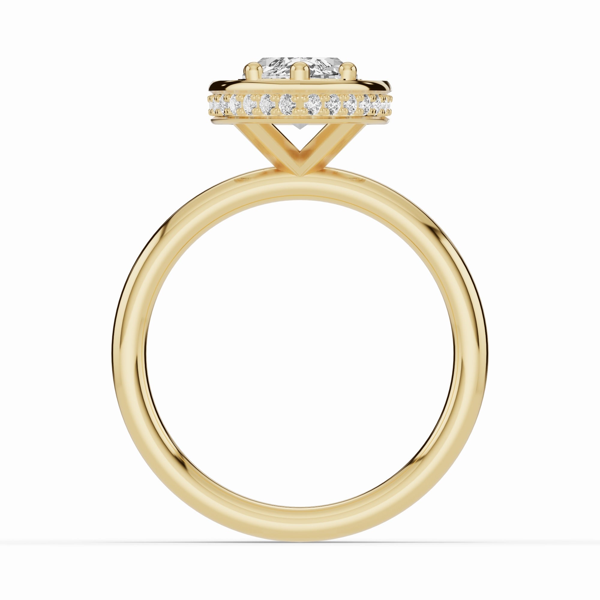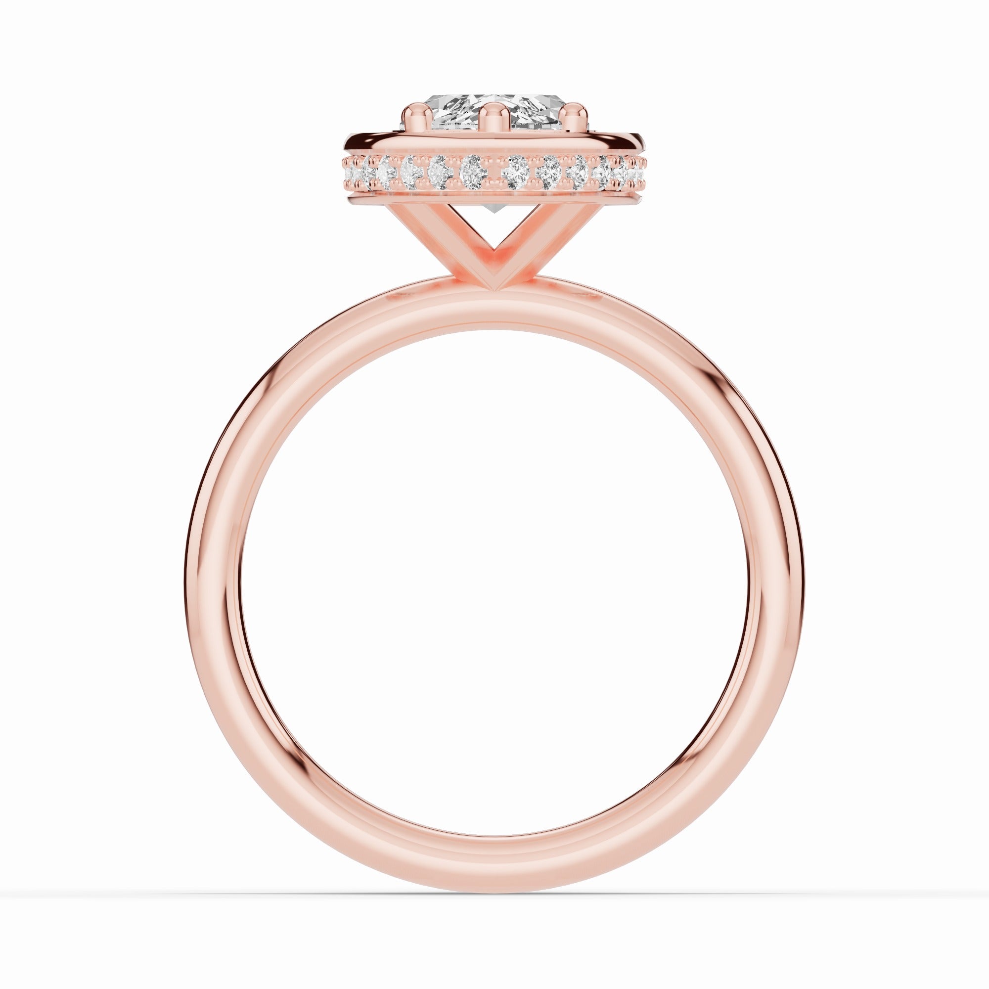 Handcrafted in your choice of 14K or 18K gold — available in yellow, white, or rose — or luxurious platinum, the Nova Halo blends contemporary design with timeless craftsmanship. The open cross-under gallery creates an airy architecture beneath the center stone, allowing maximum light to flow through while maintaining a sleek, minimal profile.