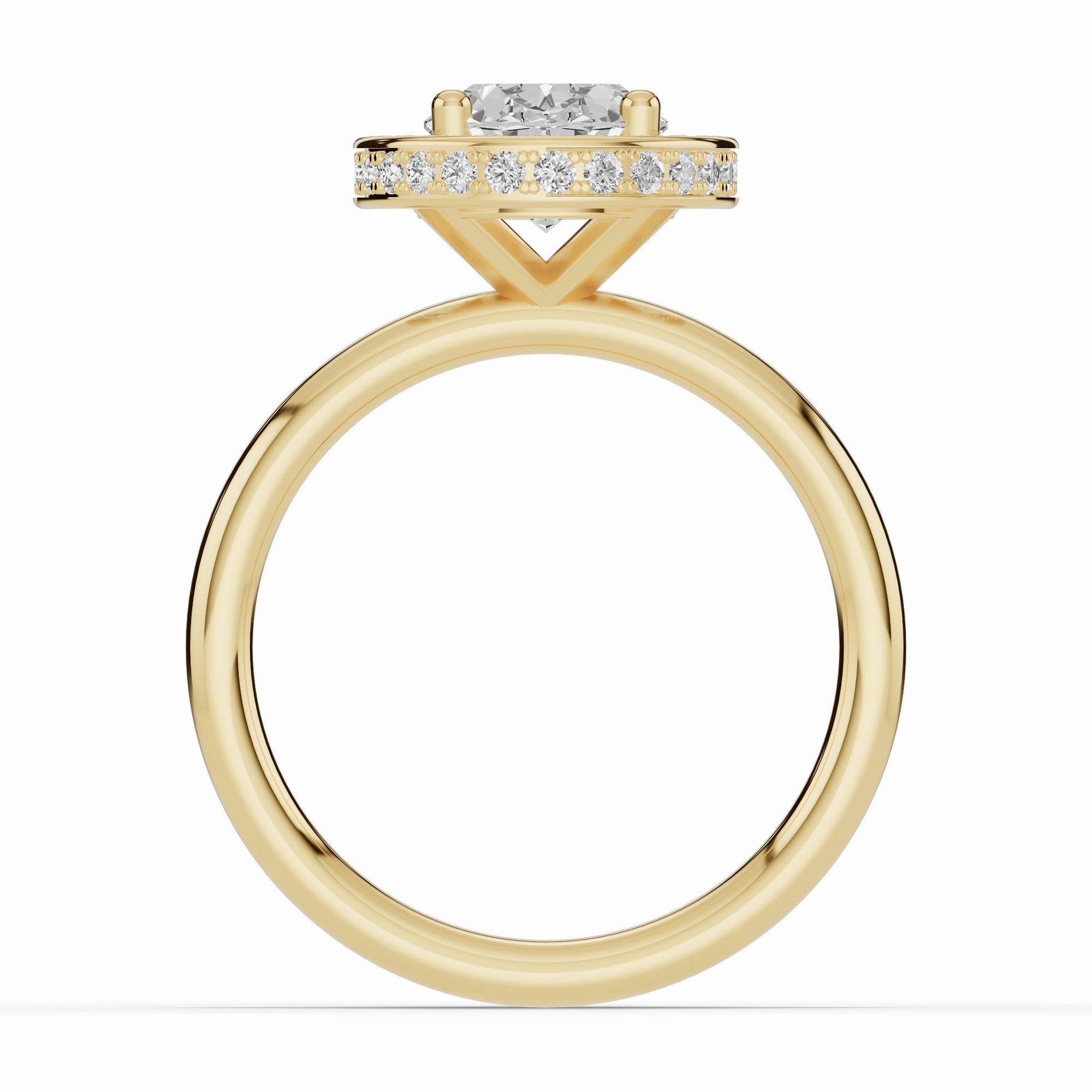 Handcrafted in your choice of 14K or 18K gold — available in yellow, white, or rose — or luxurious platinum, the Nova Halo blends contemporary design with timeless craftsmanship. The open cross-under gallery creates an airy architecture beneath the center stone, allowing maximum light to flow through while maintaining a sleek, minimal profile.