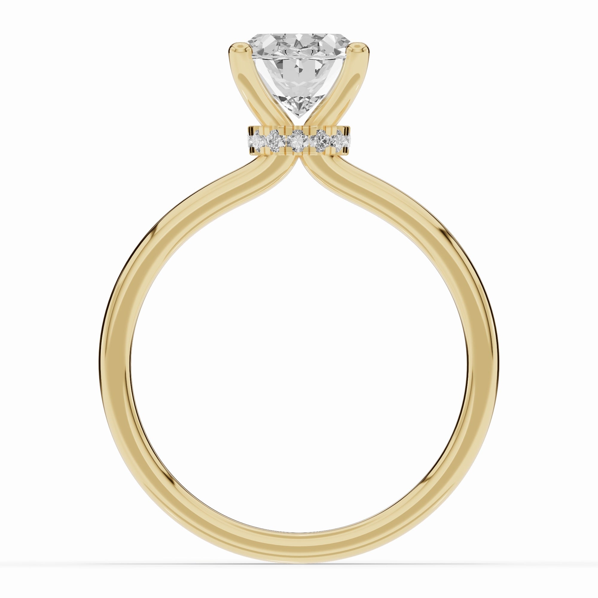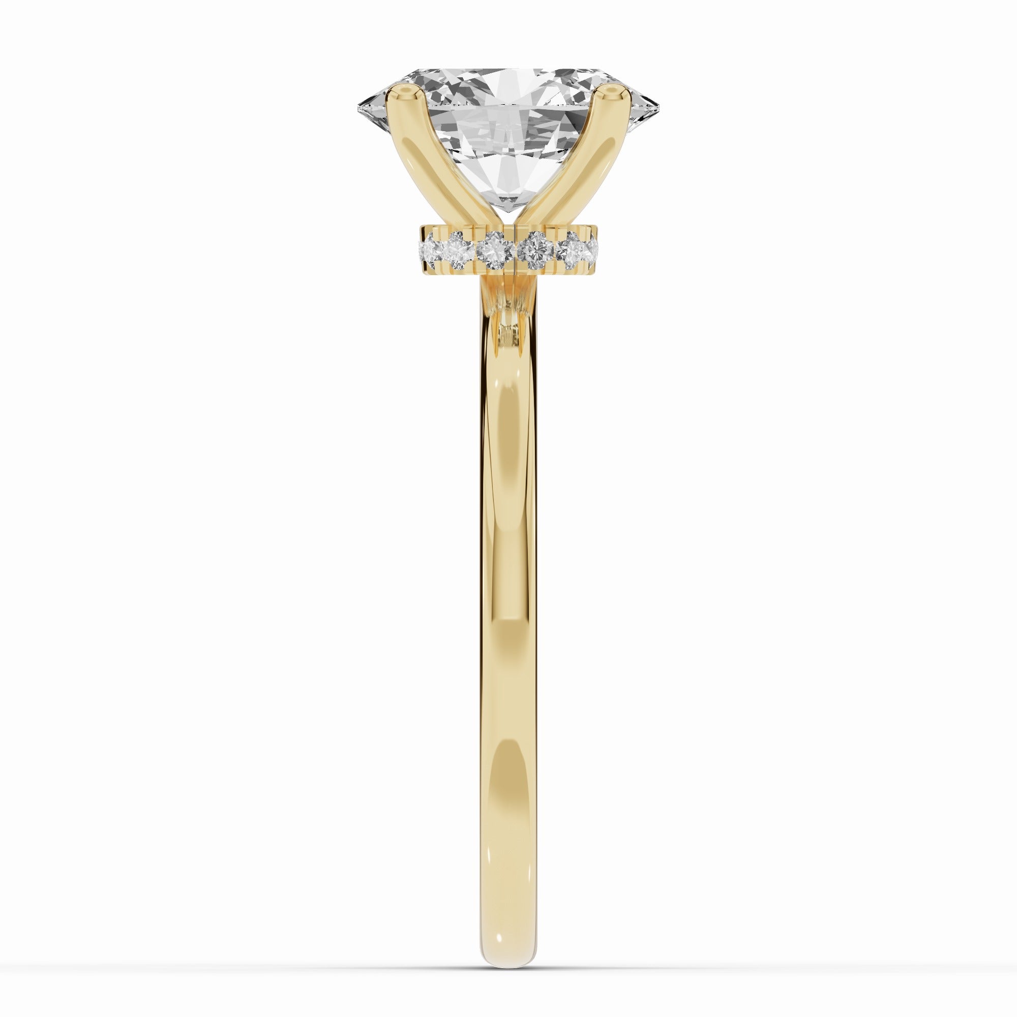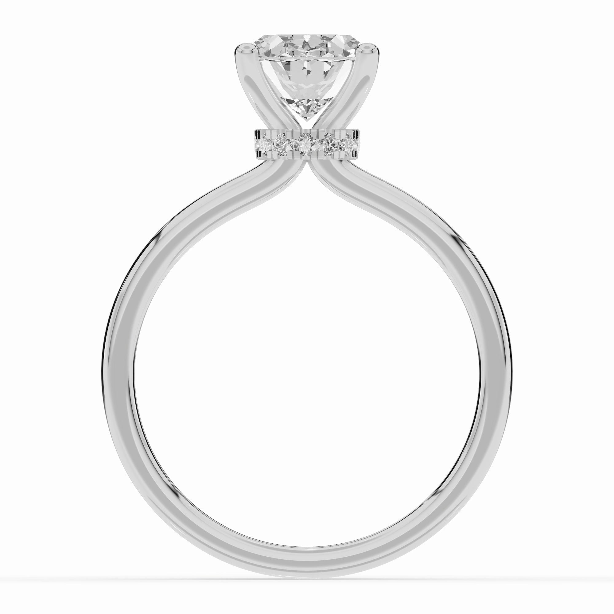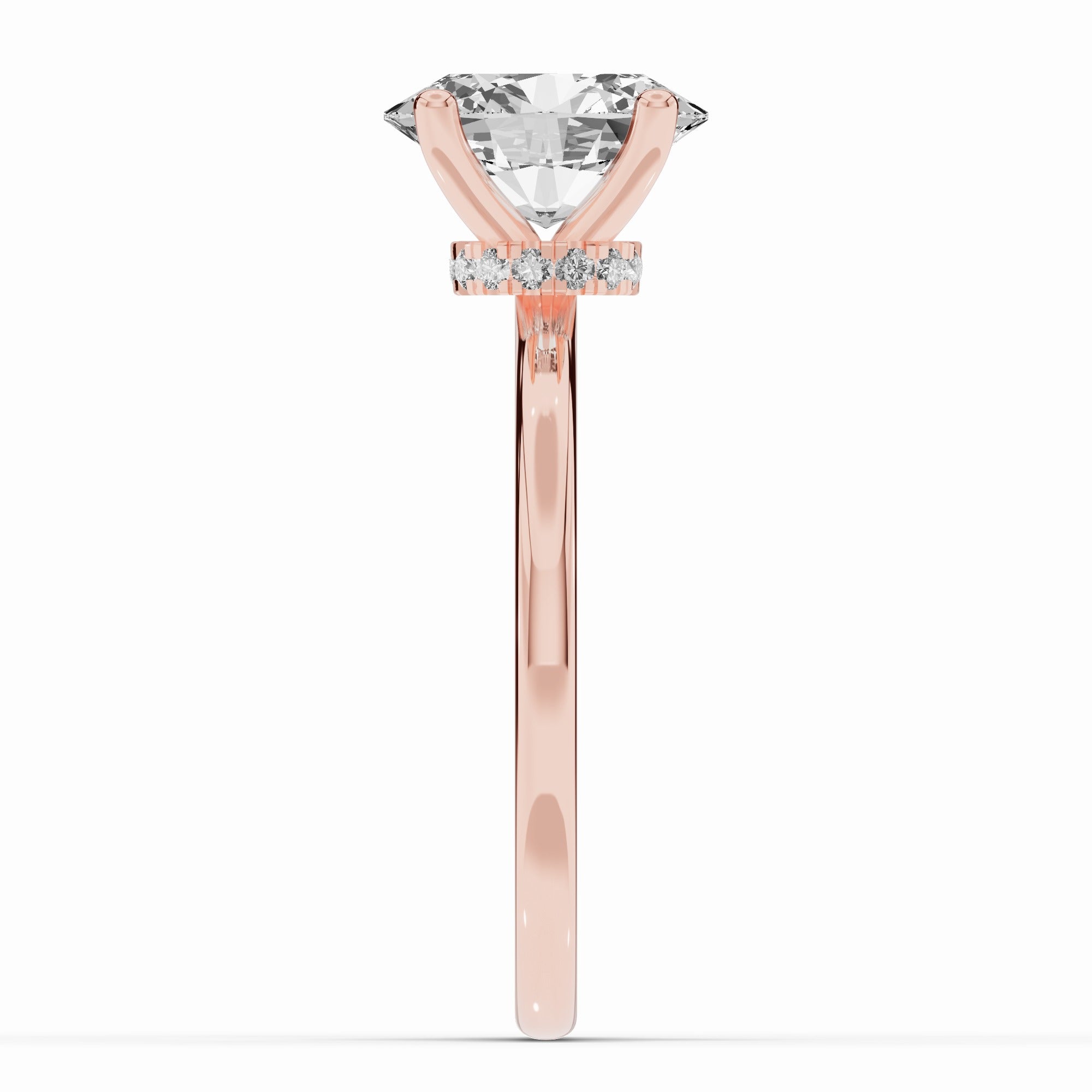 What makes this ring truly special is the delicate pavé crown beneath the center stone — a hidden circle of diamonds that glows softly like a tiara just for the wearer. With every movement, this secret detail catches the light, adding a private sparkle that elevates the design beyond a traditional solitaire.