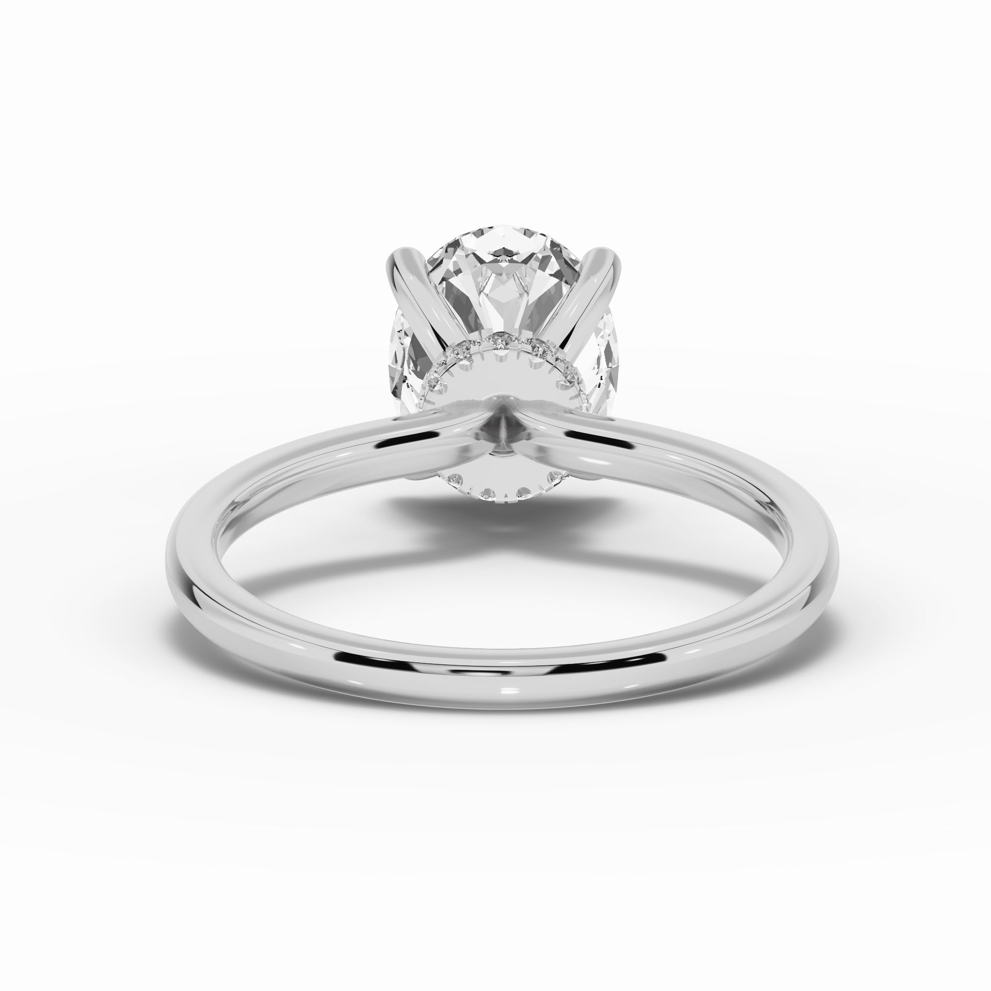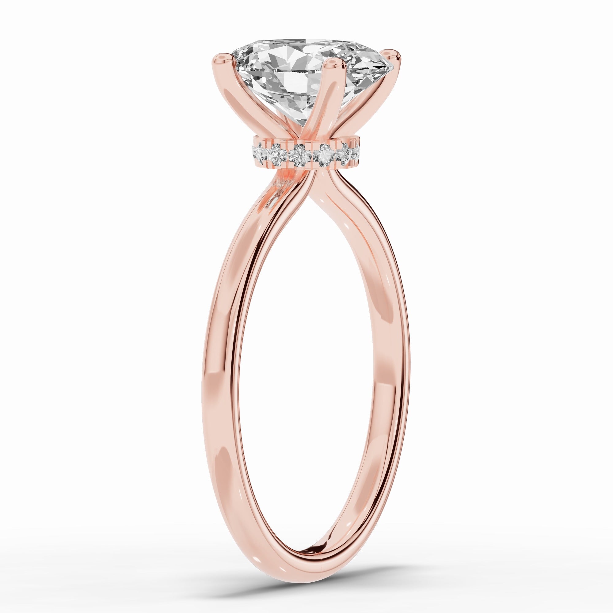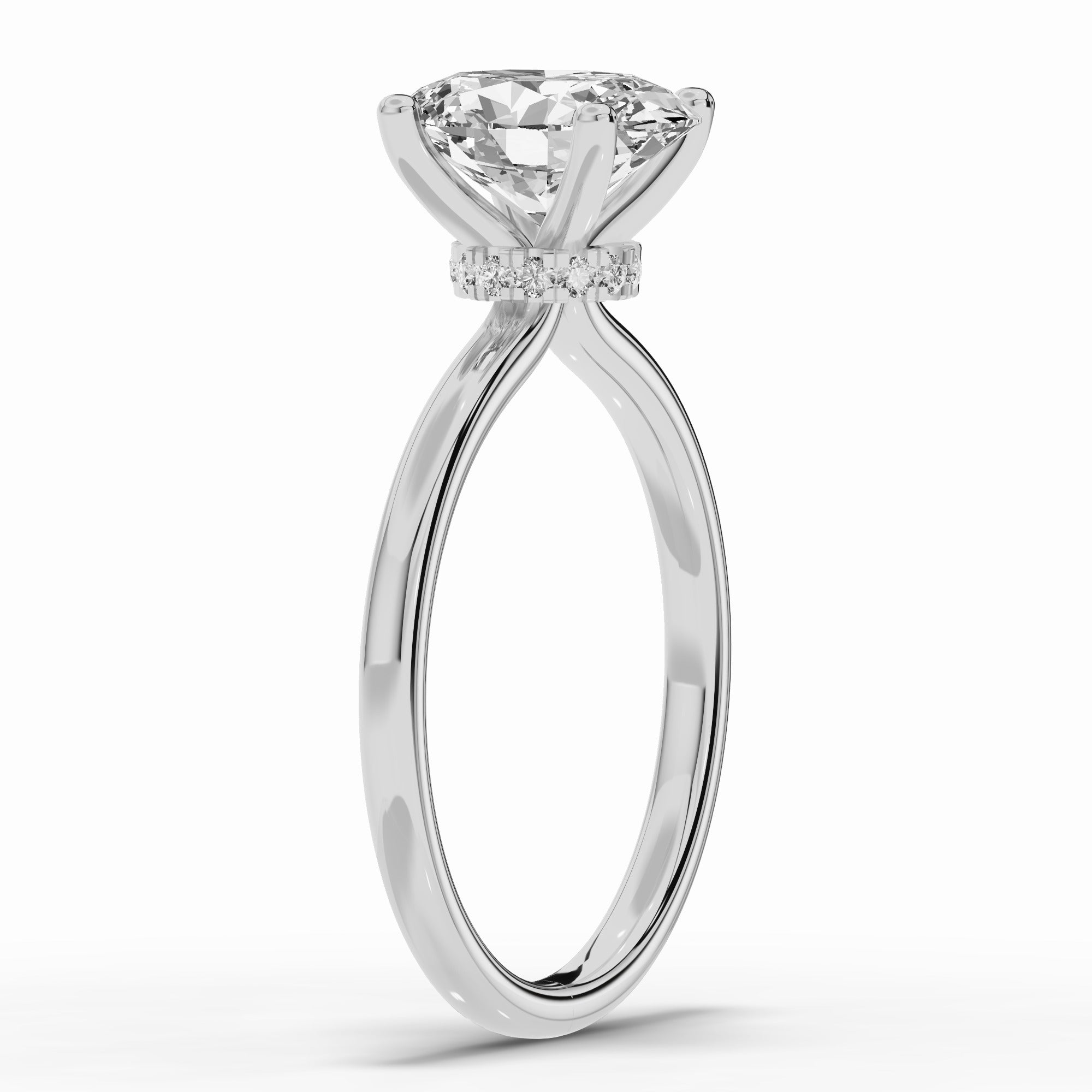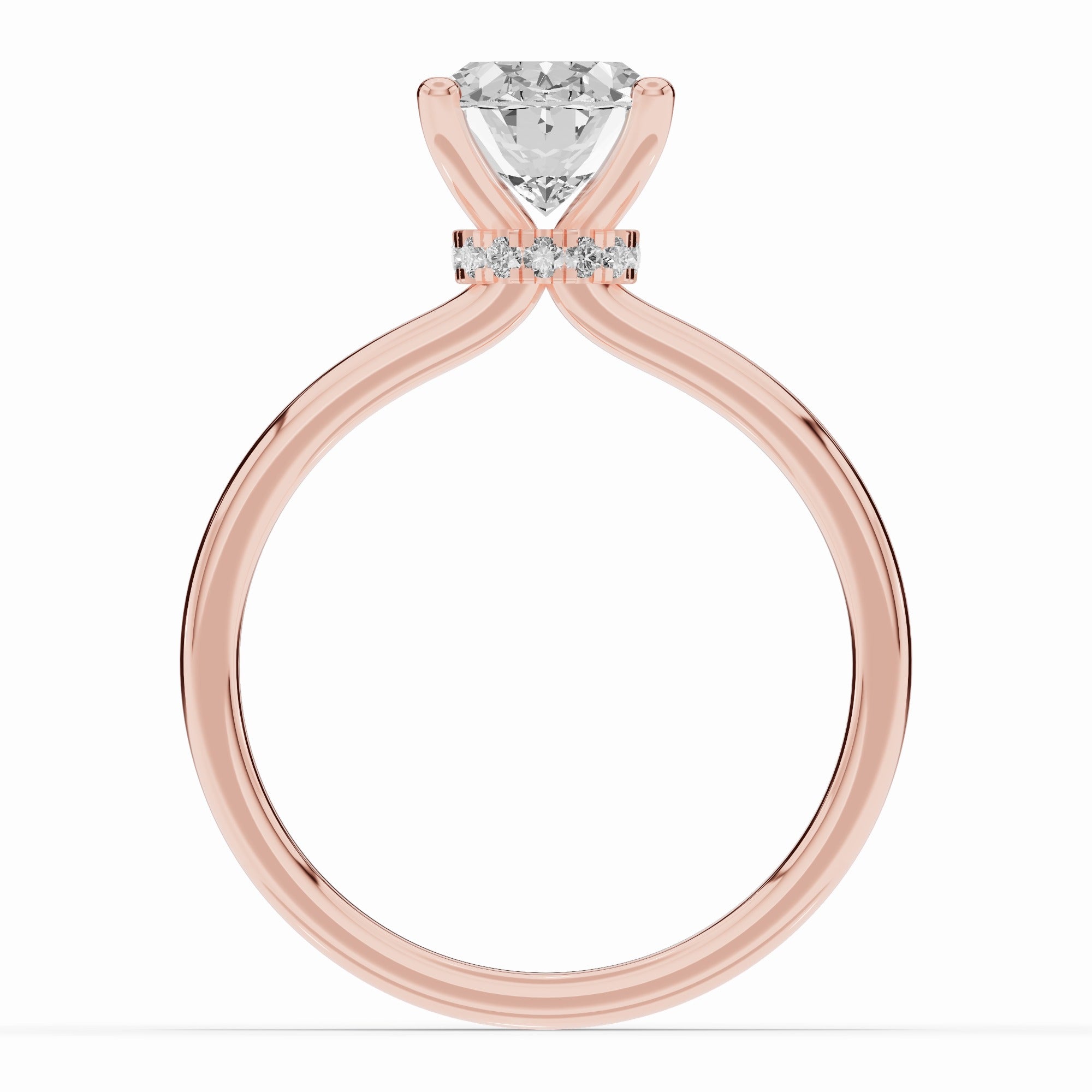 What makes this ring truly special is the delicate pavé crown beneath the center stone — a hidden circle of diamonds that glows softly like a tiara just for the wearer. With every movement, this secret detail catches the light, adding a private sparkle that elevates the design beyond a traditional solitaire.