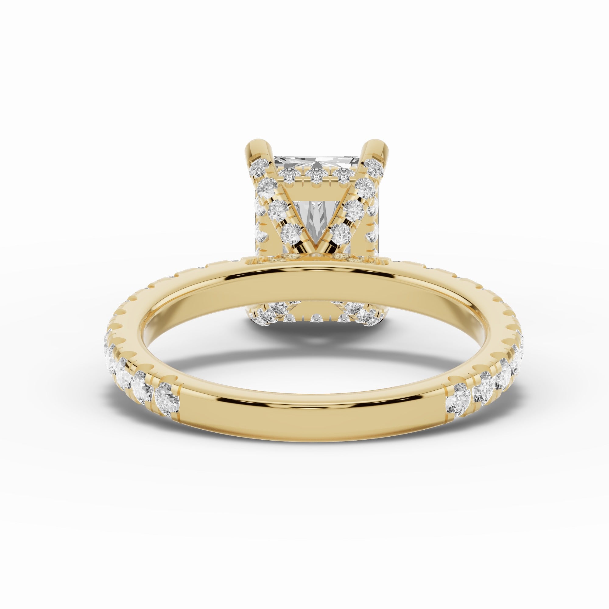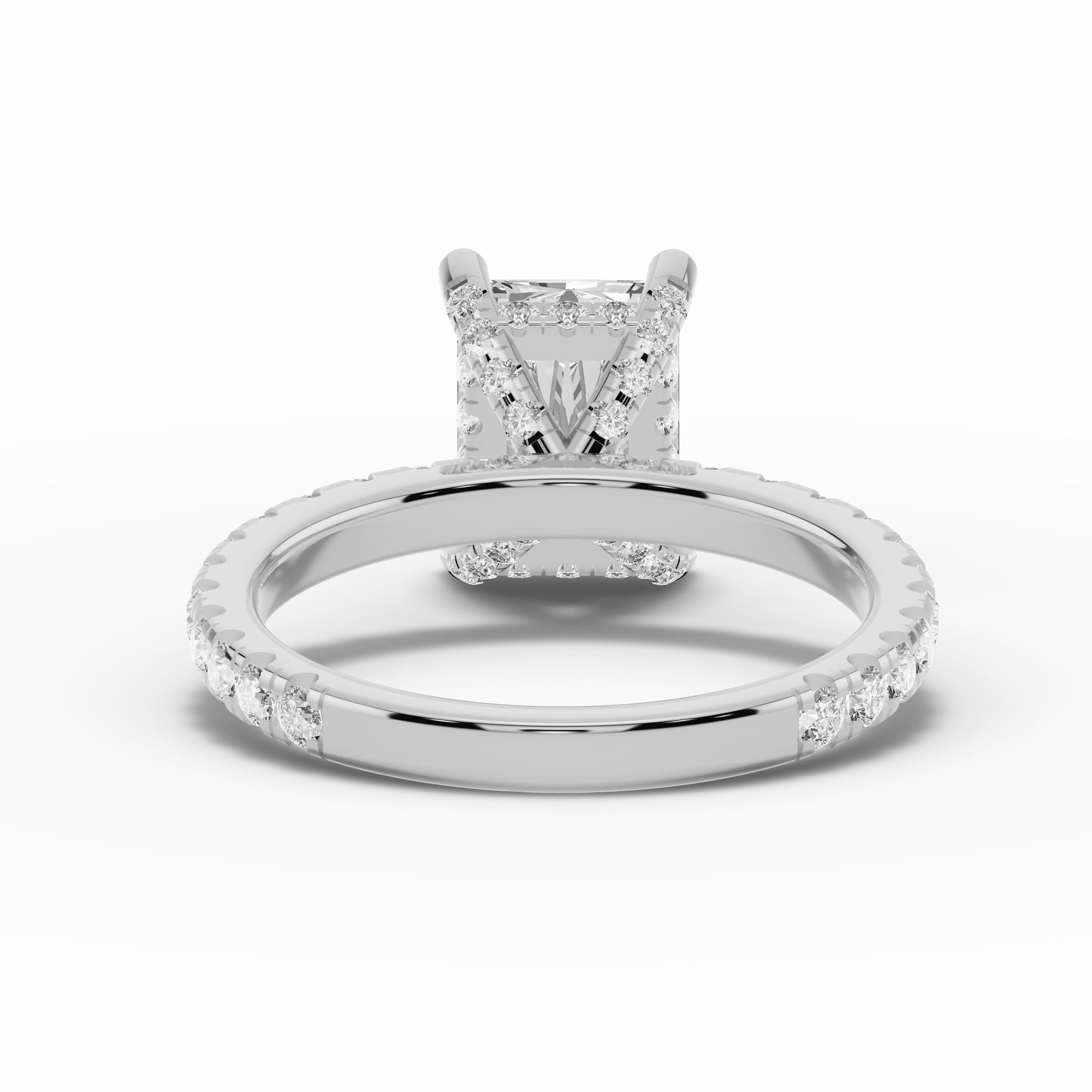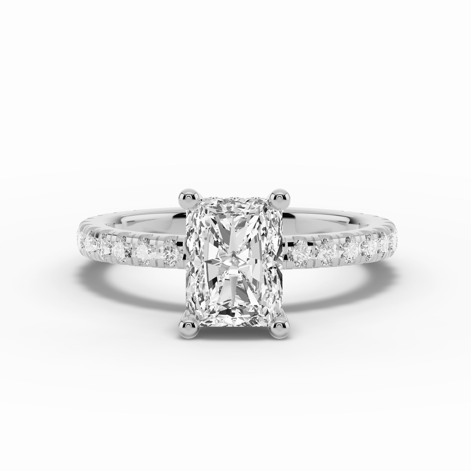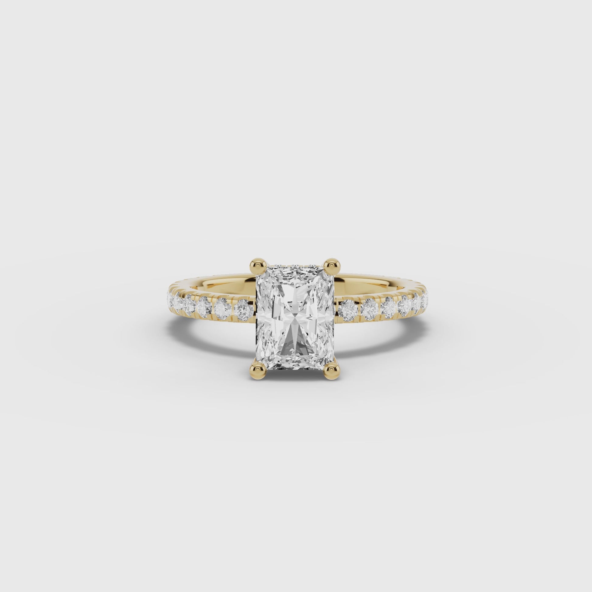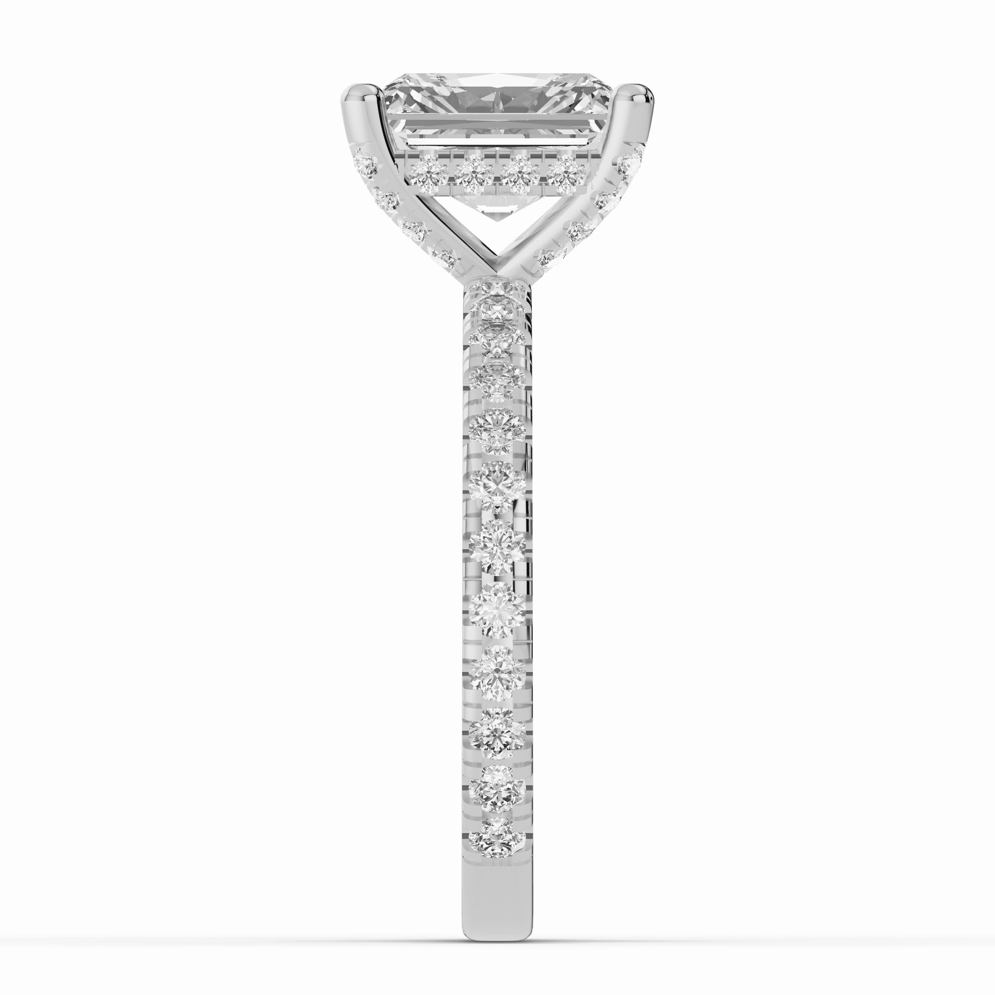 The Coronet Diamond Crown Engagement Ring is a timeless expression of brilliance and grace. Featuring a pavé diamond-adorned band with prong-set stones, this design radiates light from every angle while keeping a sleek, elegant profile. The centerpiece is elevated by a delicate crown of diamonds beneath the setting, creating a regal touch that sparkles with every movement.