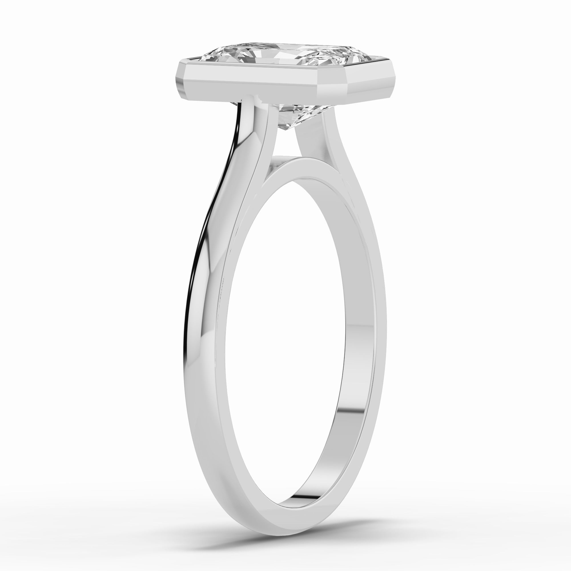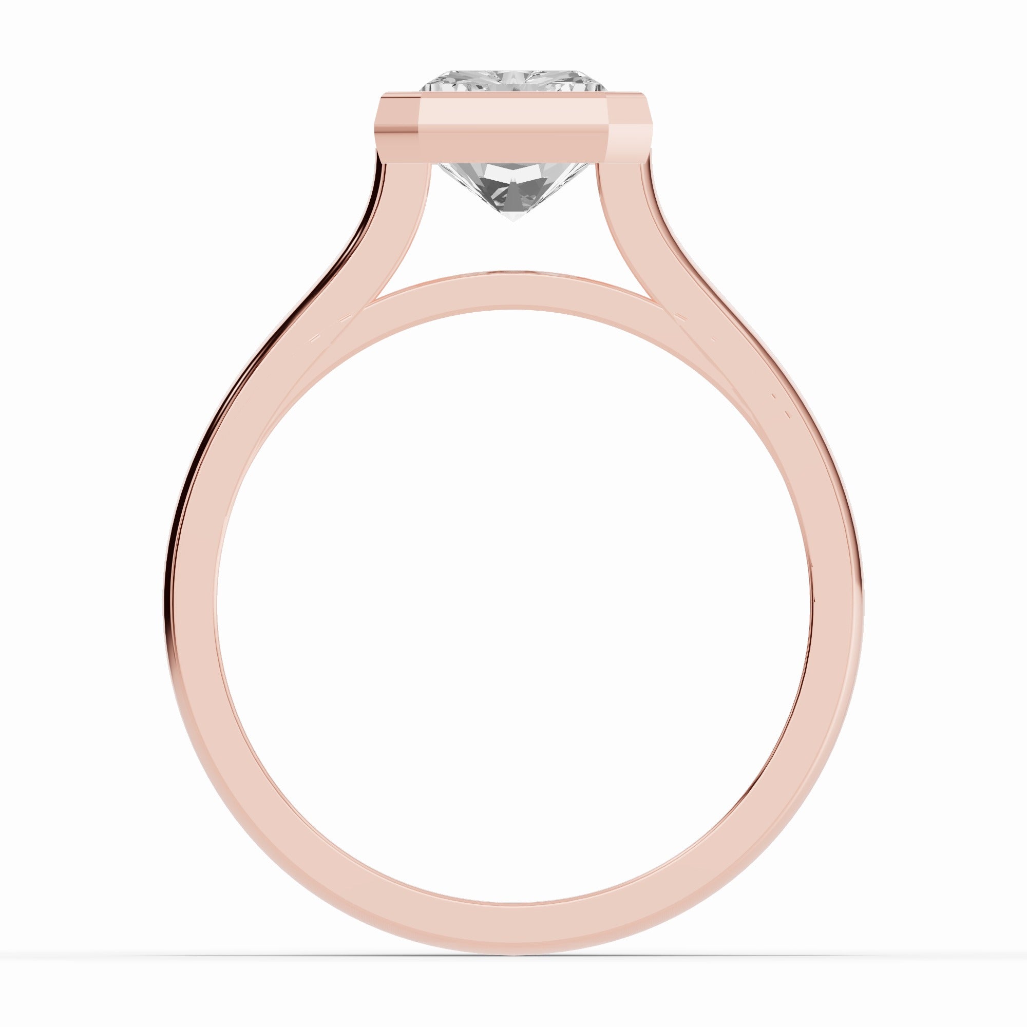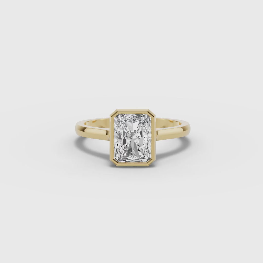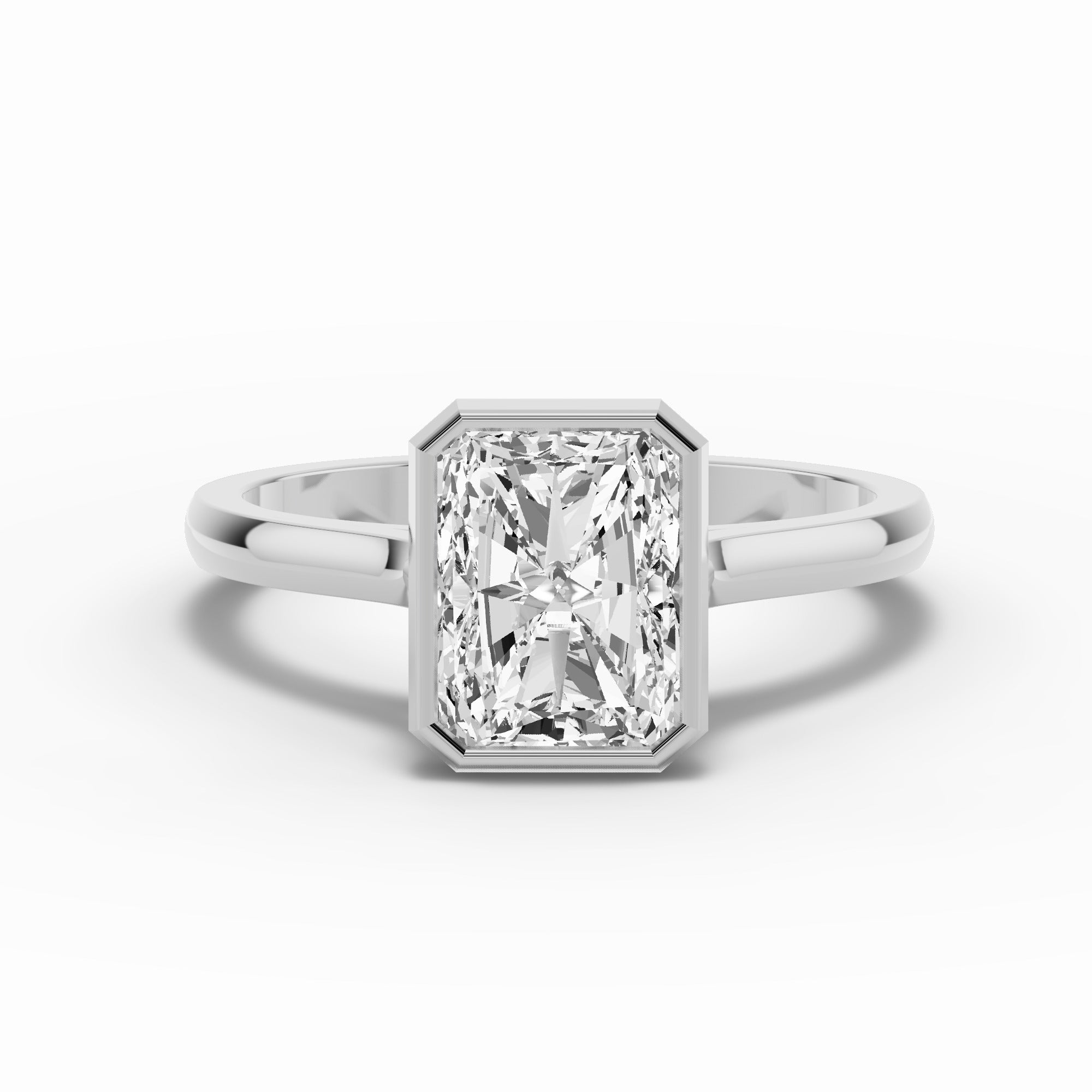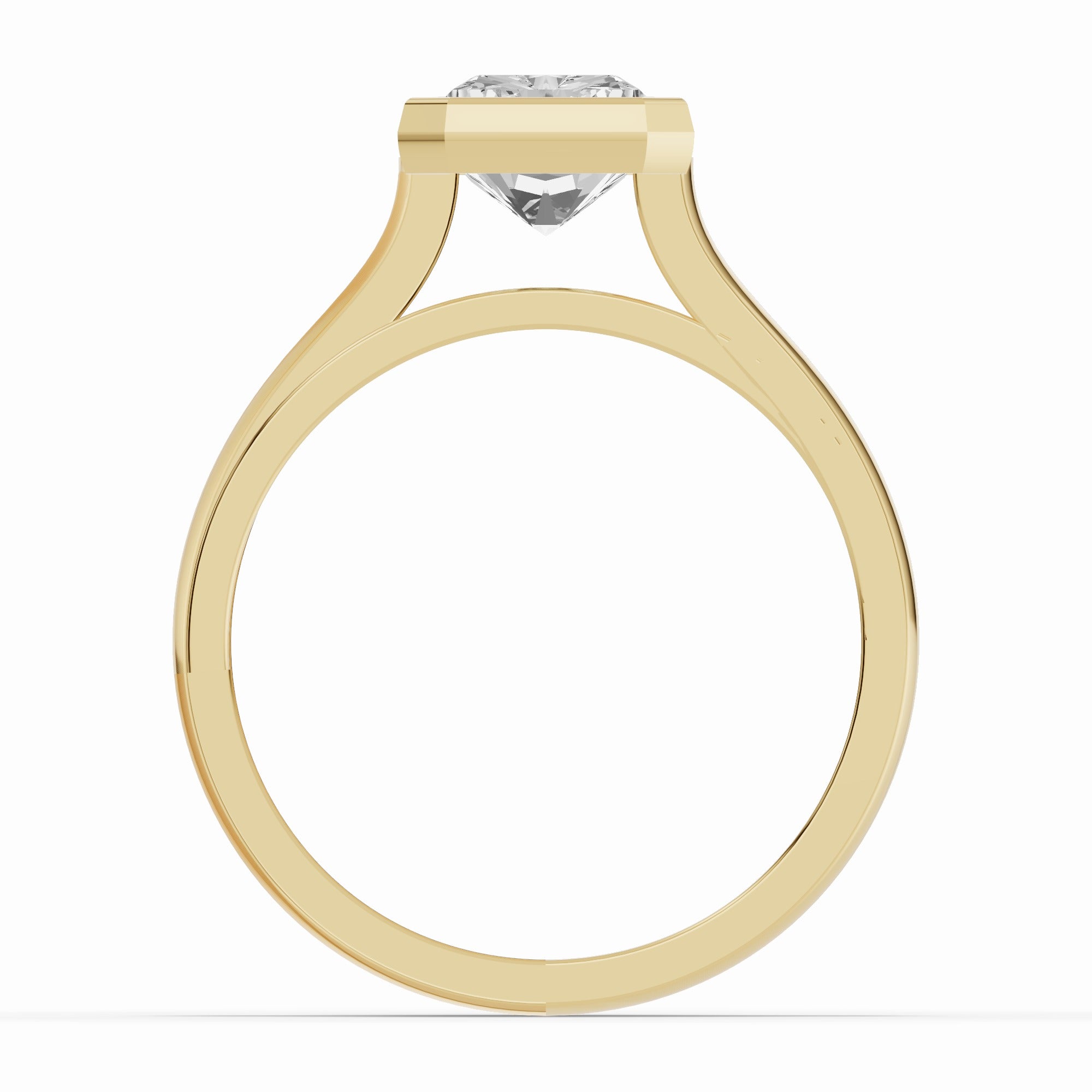 The Lumière Bezel Solitaire is a celebration of modern minimalism and radiant light. This elegant design features a sleek, polished band that flows seamlessly into a contemporary bezel setting, framing the center stone with smooth, protective edges while allowing maximum brilliance from every angle.