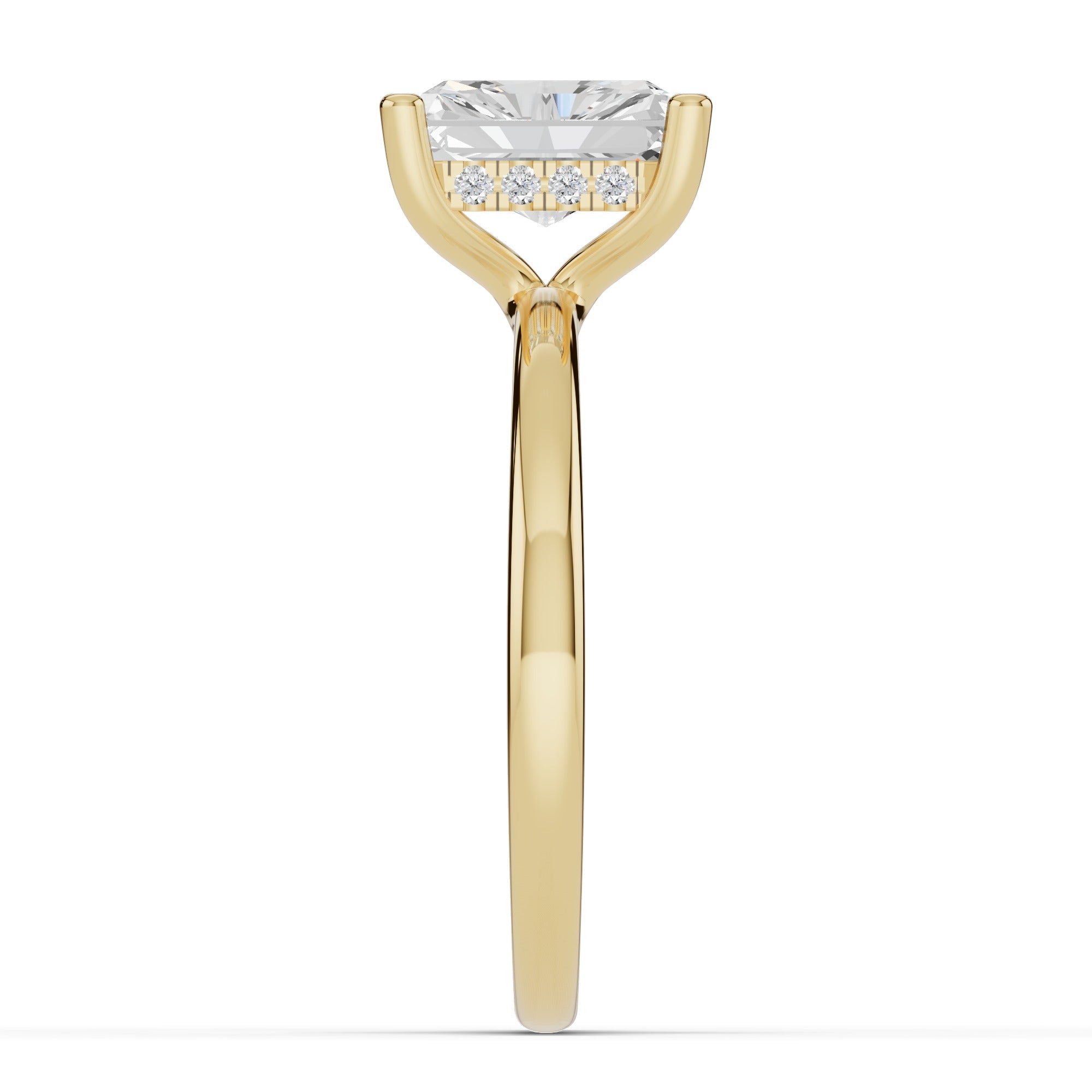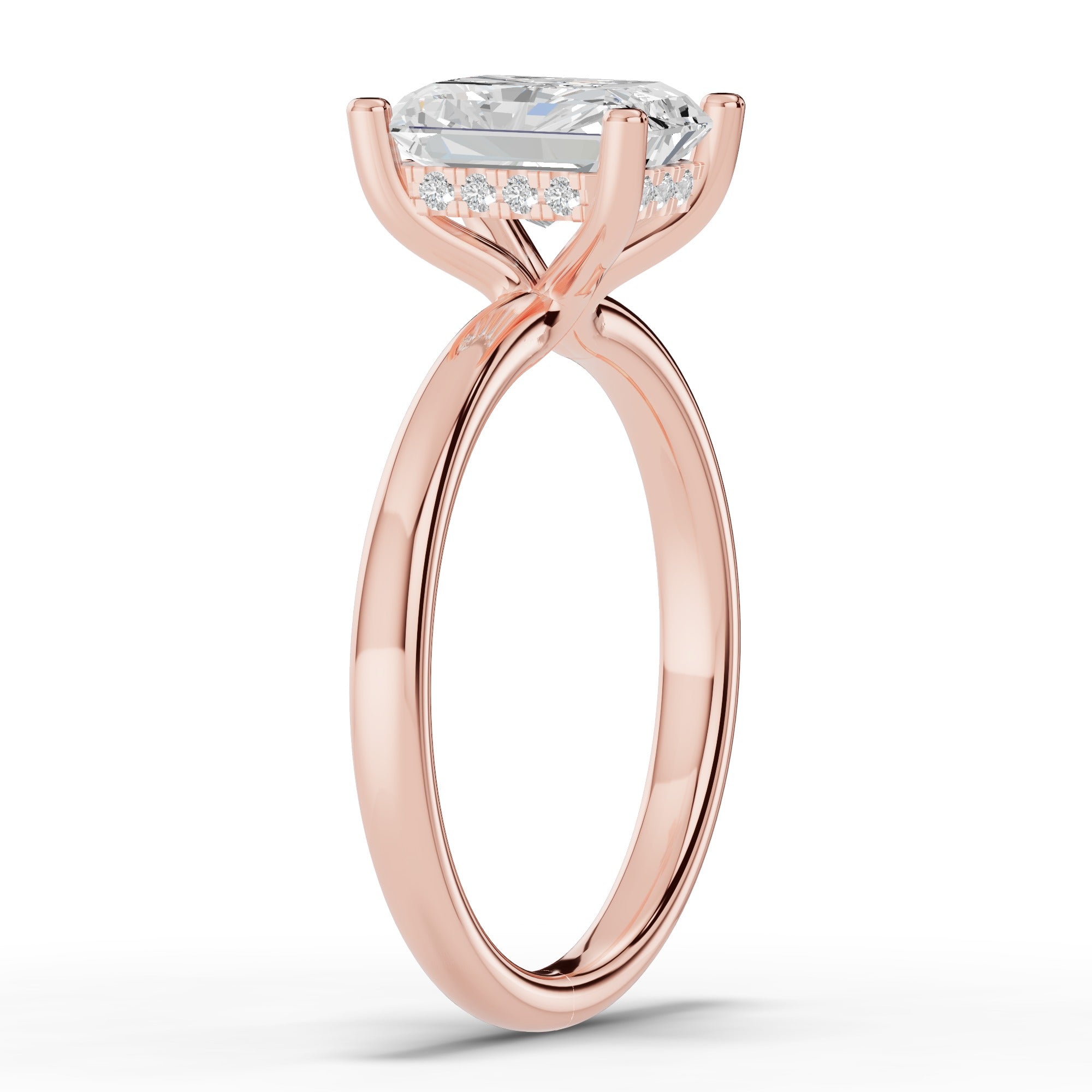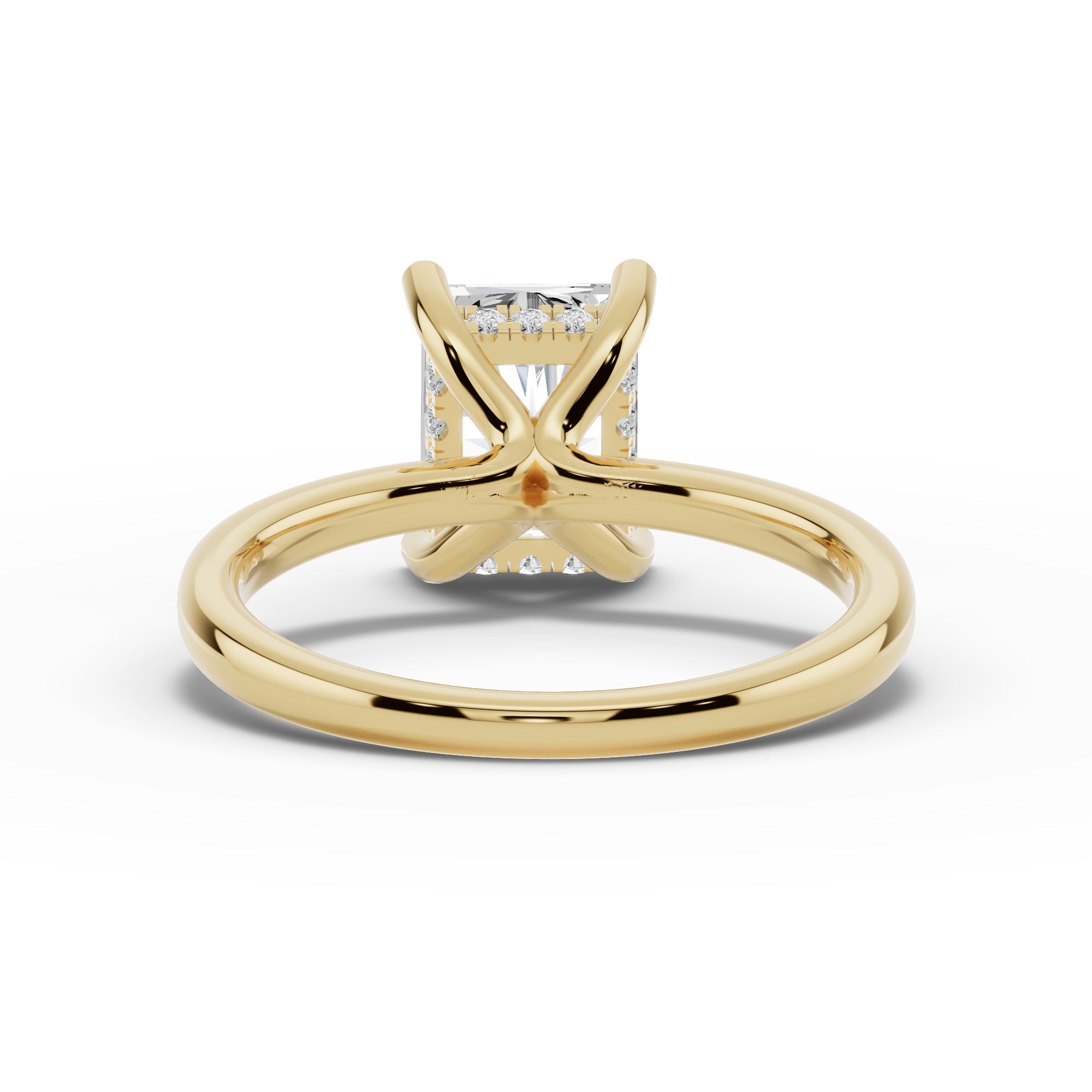 The true magic lies beneath the stone — a hidden halo of pavé-set diamonds encircles the gallery, catching the light with every movement and adding a subtle, secret sparkle for the wearer to enjoy.