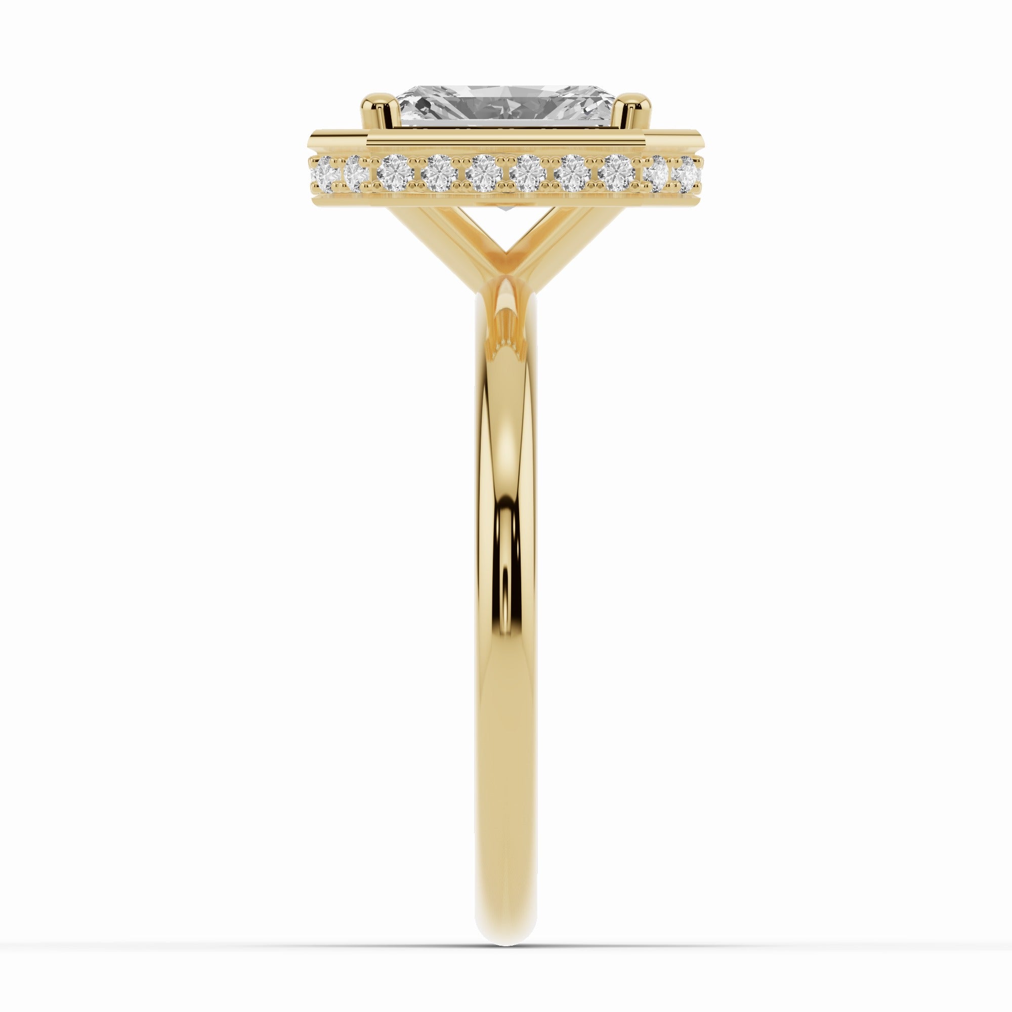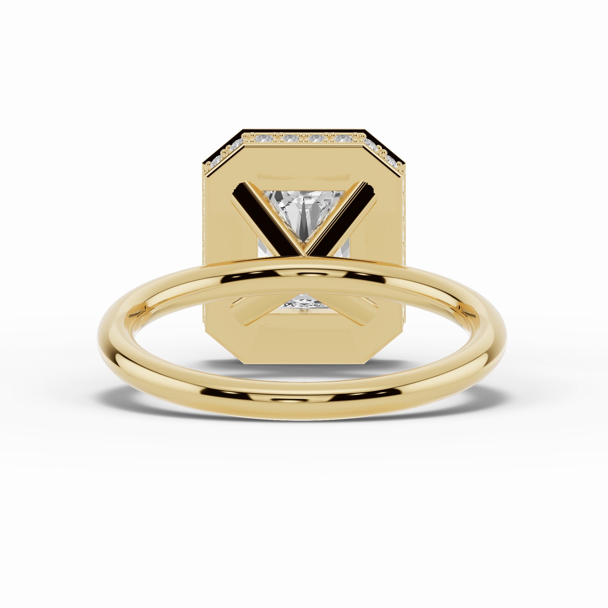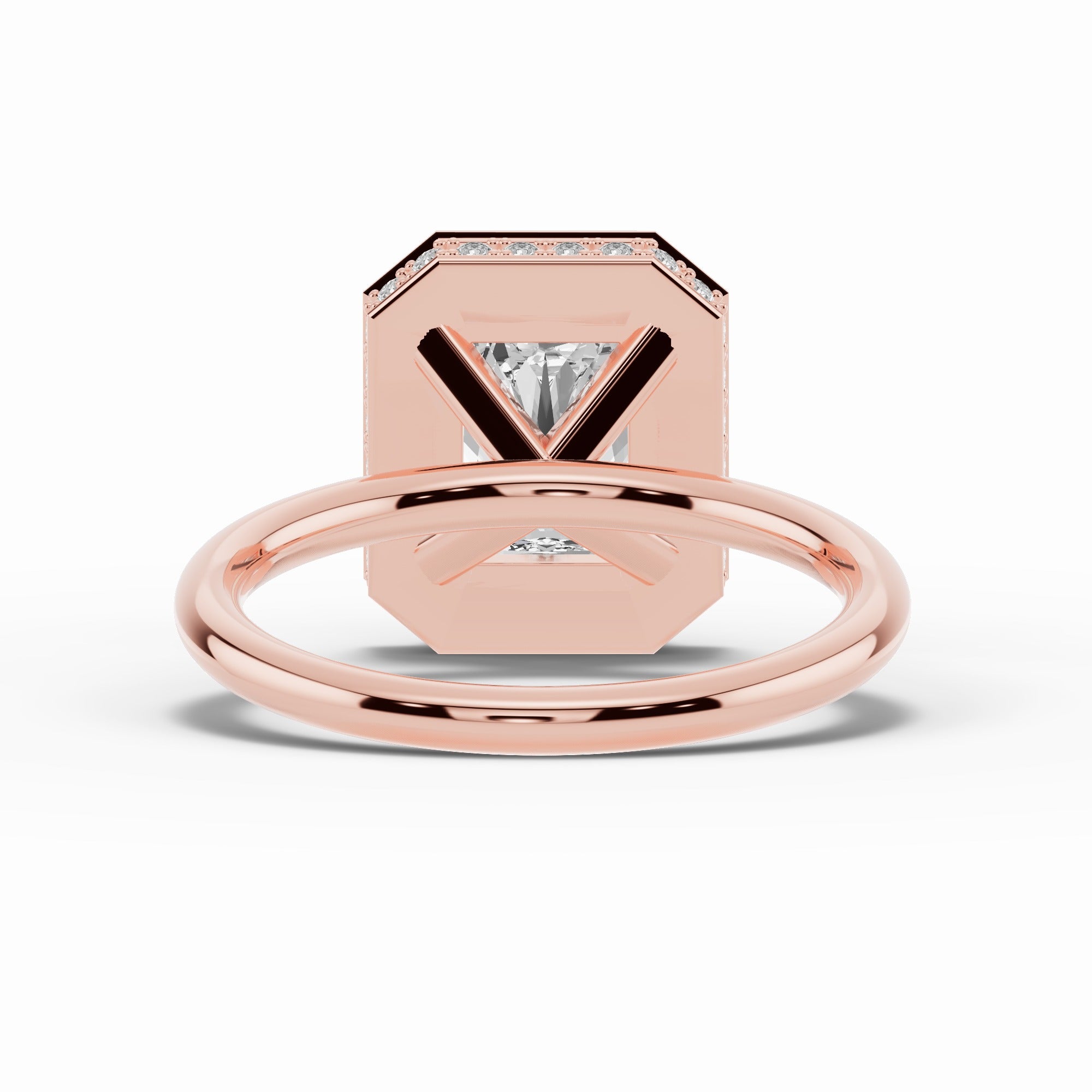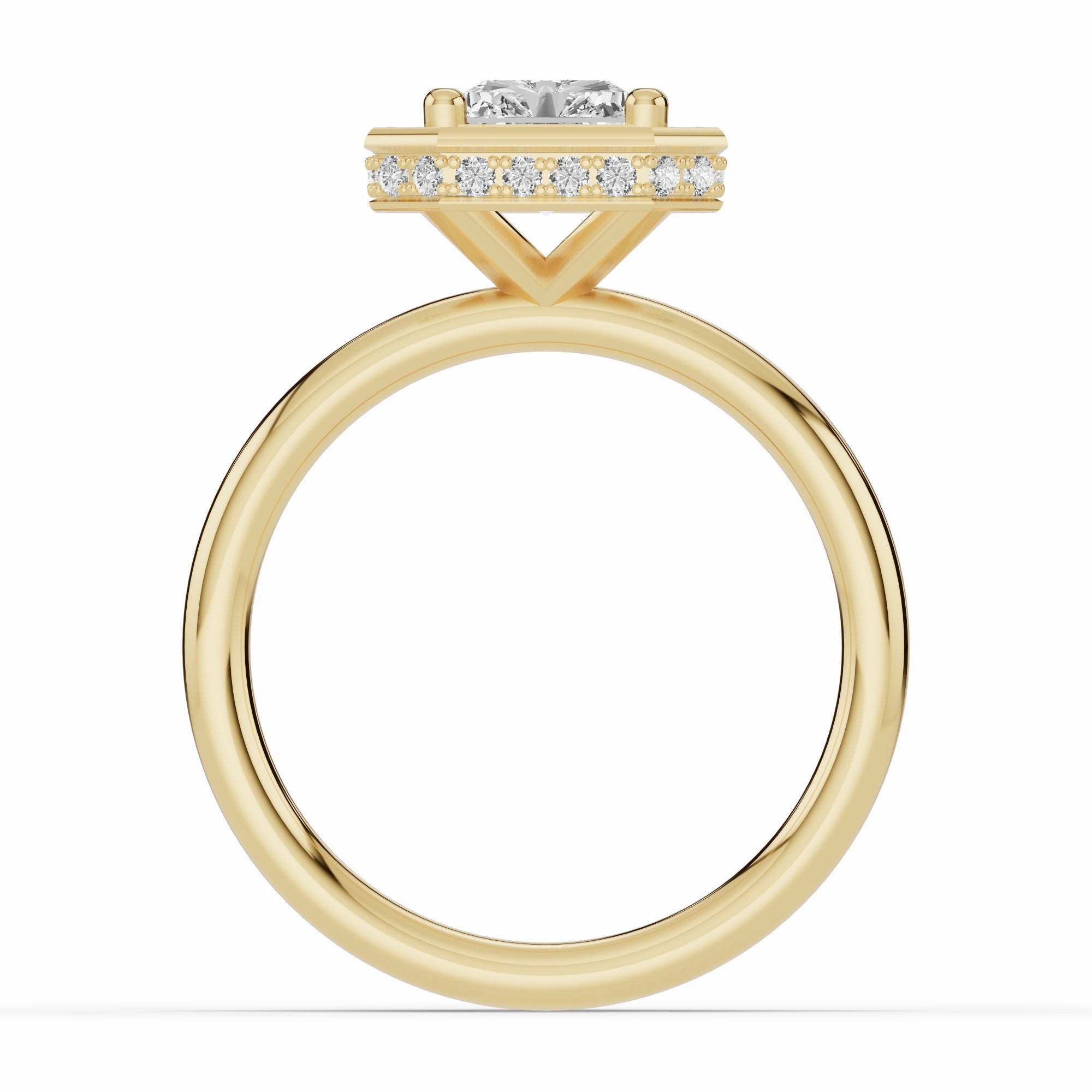Handcrafted in your choice of 14K or 18K gold — available in yellow, white, or rose — or luxurious platinum, the Nova Halo blends contemporary design with timeless craftsmanship. The open cross-under gallery creates an airy architecture beneath the center stone, allowing maximum light to flow through while maintaining a sleek, minimal profile.