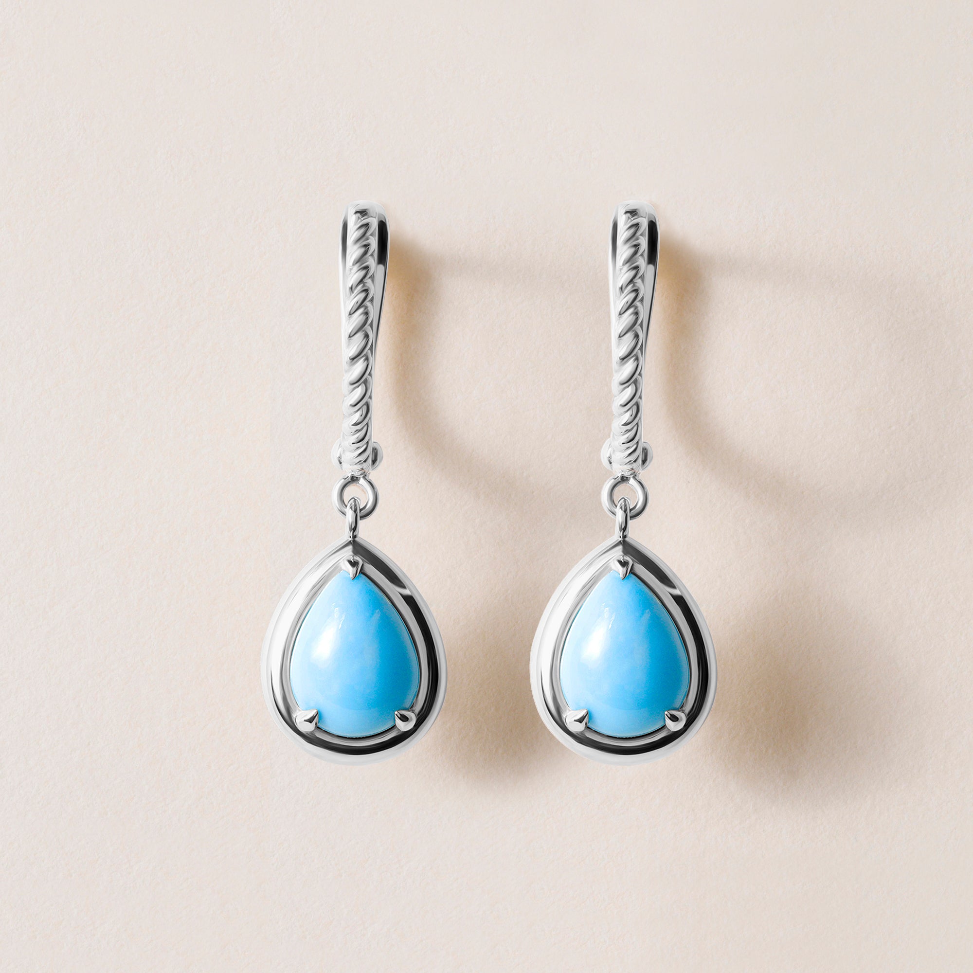 Our Riviera Teardrop Turquoise Earrings are the perfect balance of bold color and refined elegance. Featuring natural pear-shaped turquoise gemstones, each approximately 1.00 carat, they are designed to give you the maximum pop of color and presence.