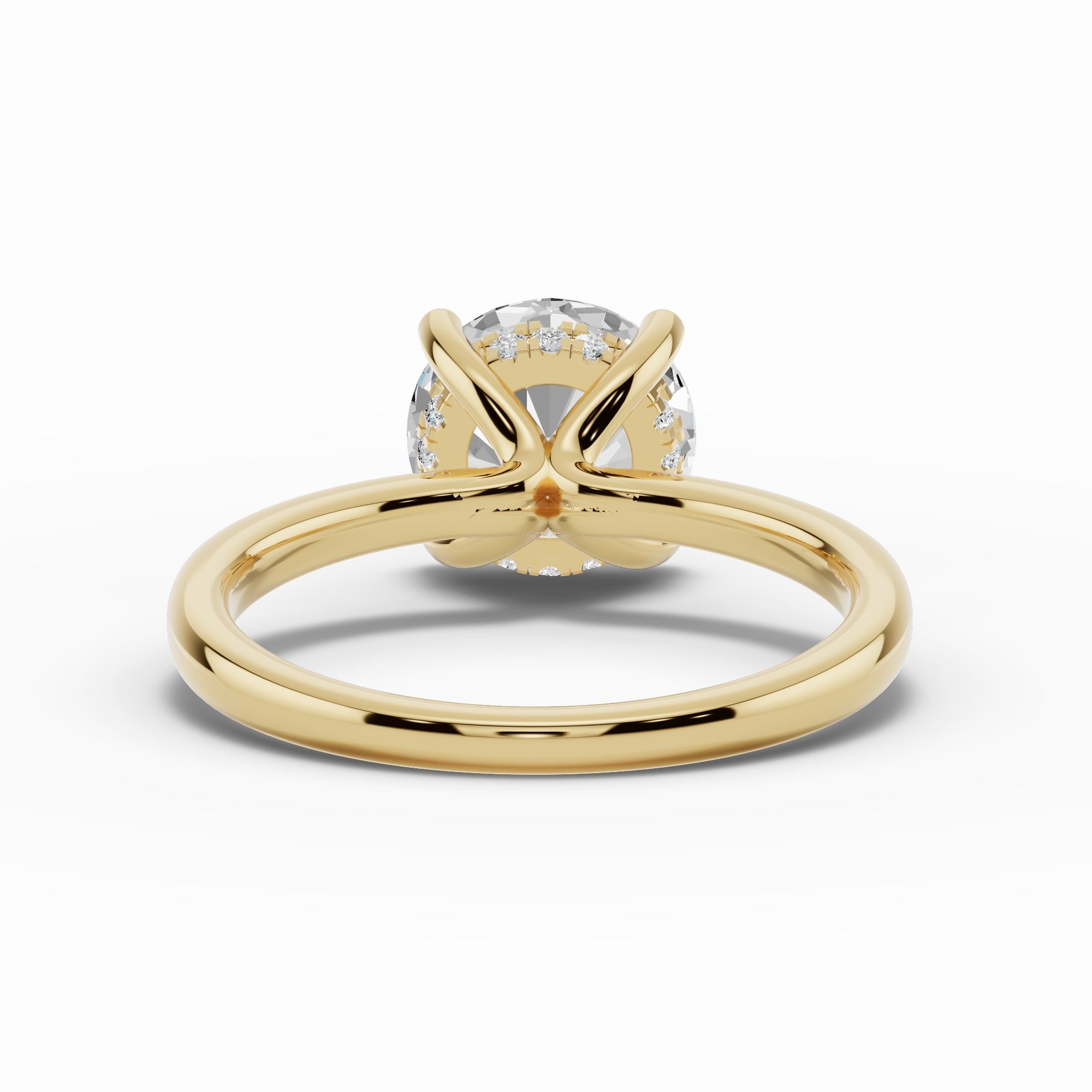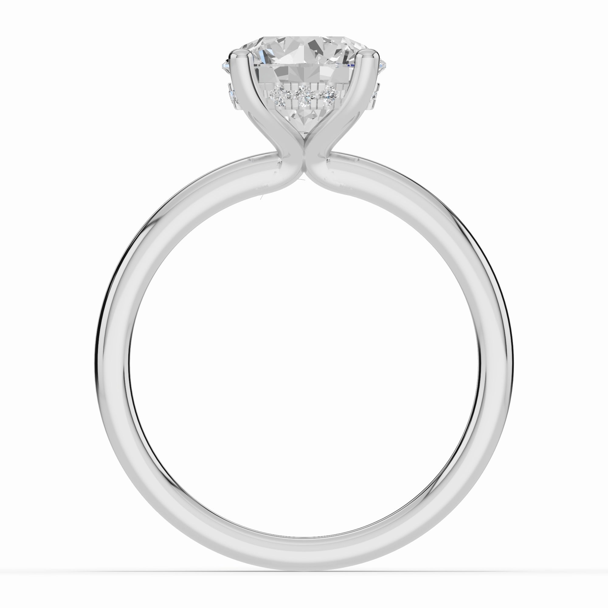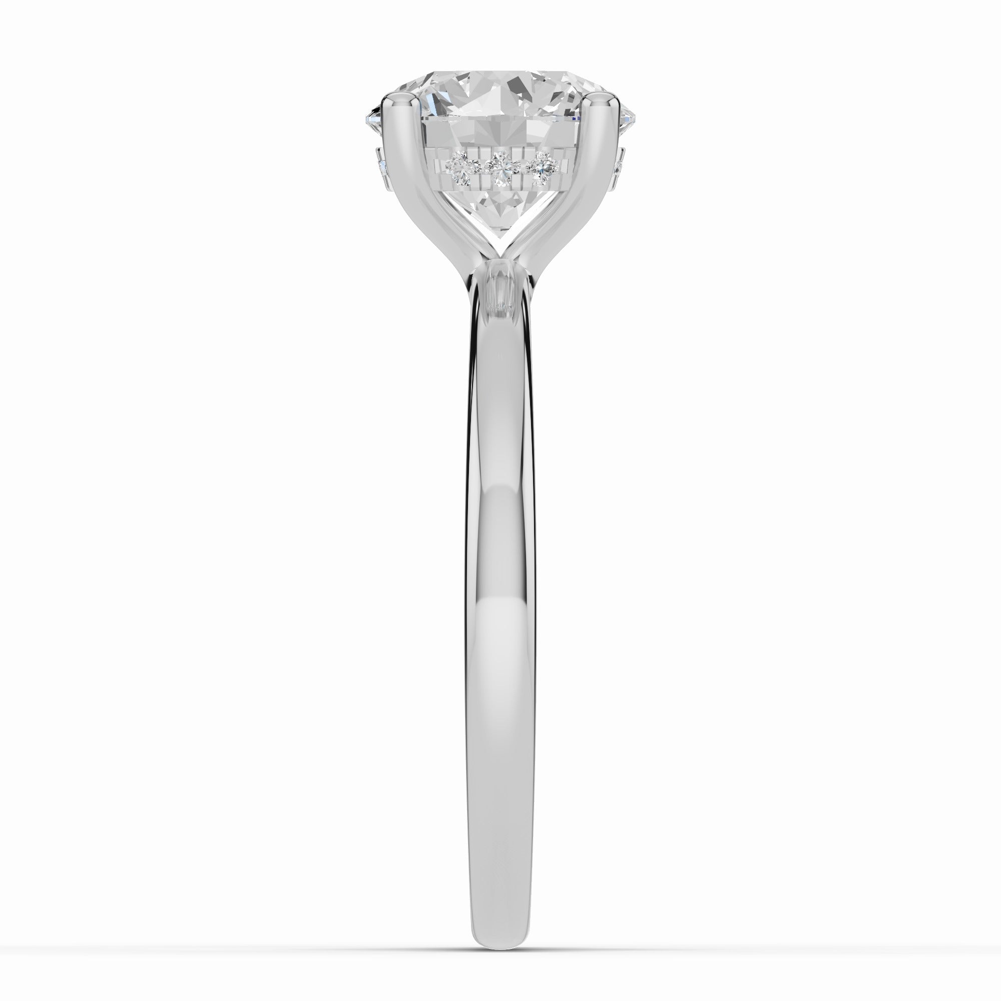 The true magic lies beneath the stone — a hidden halo of pavé-set diamonds encircles the gallery, catching the light with every movement and adding a subtle, secret sparkle for the wearer to enjoy.