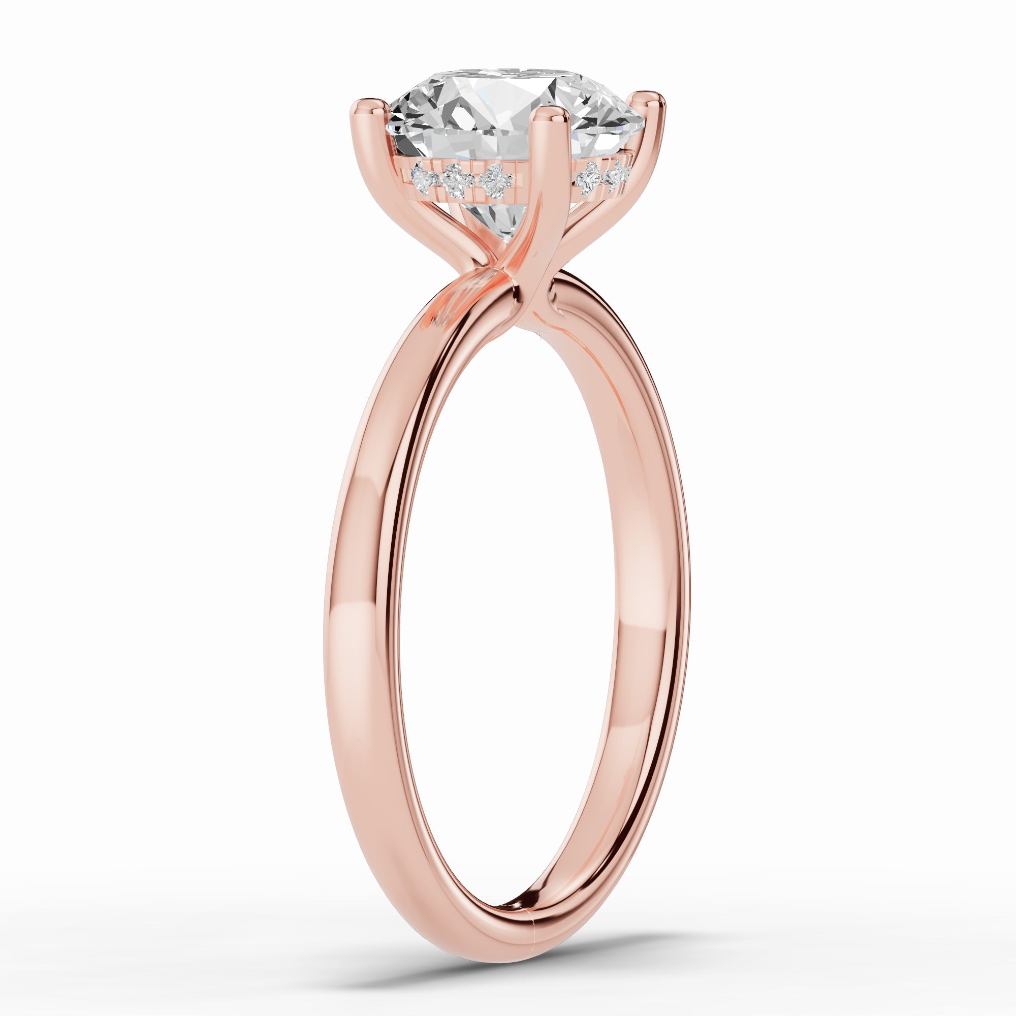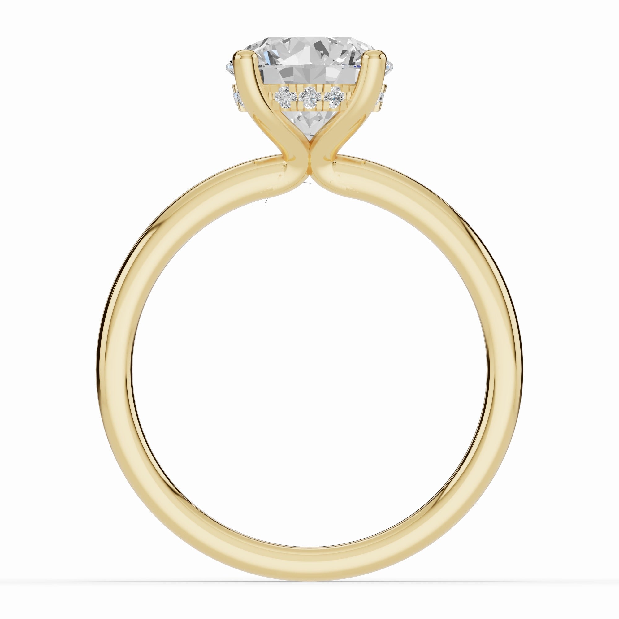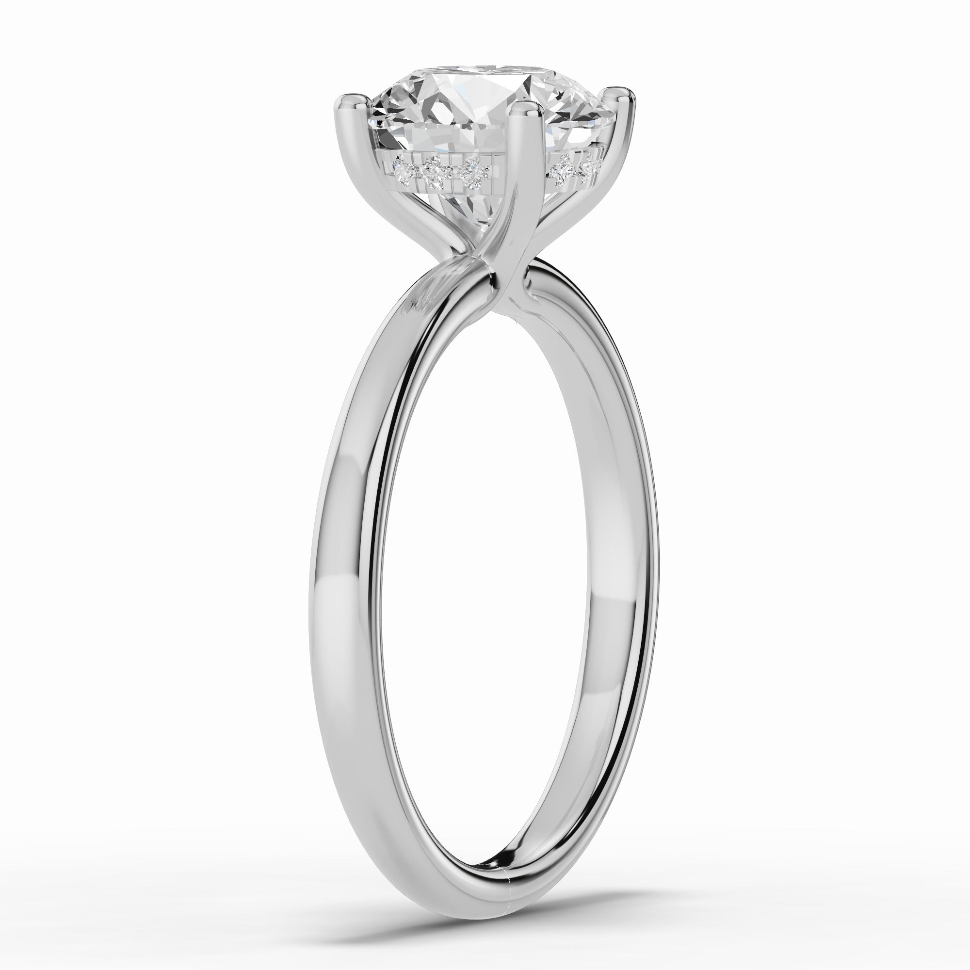 The true magic lies beneath the stone — a hidden halo of pavé-set diamonds encircles the gallery, catching the light with every movement and adding a subtle, secret sparkle for the wearer to enjoy.
