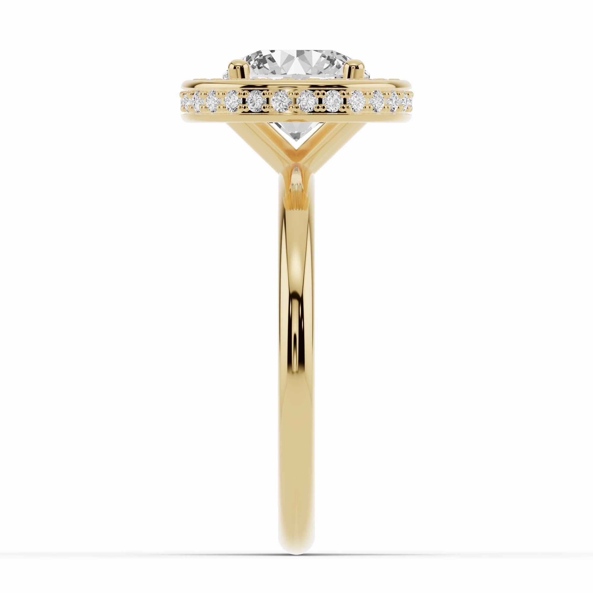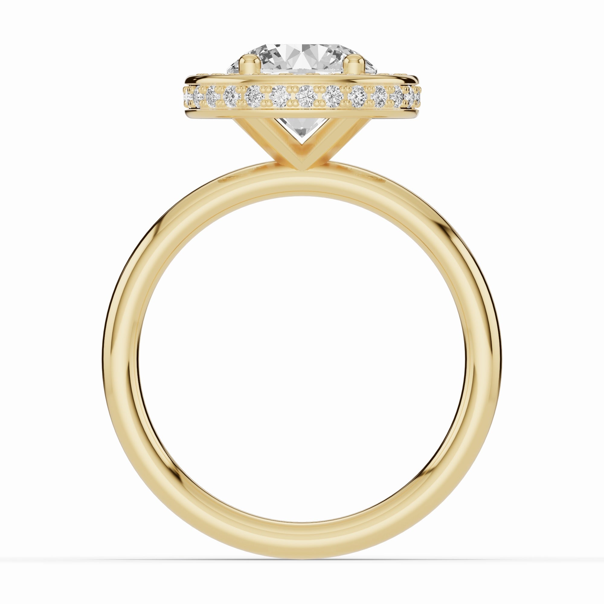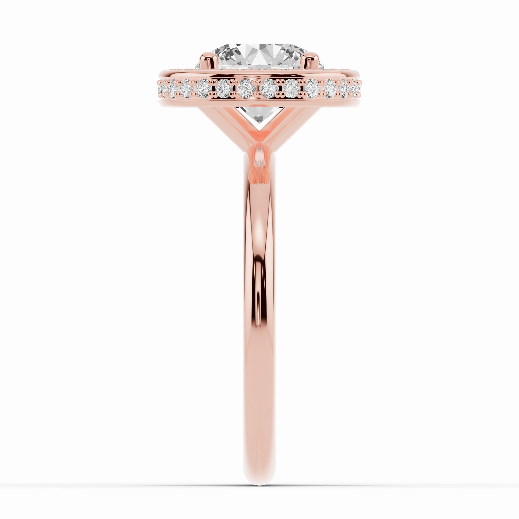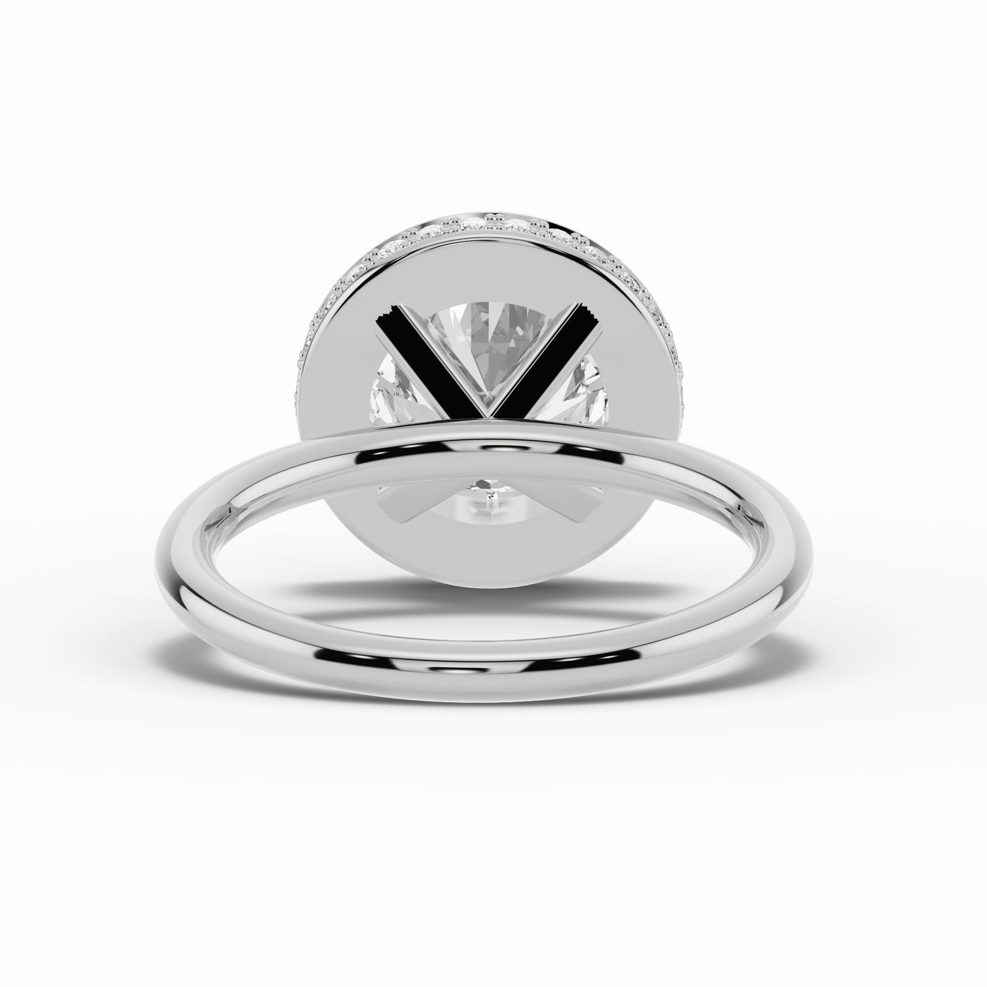 Handcrafted in your choice of 14K or 18K gold — available in yellow, white, or rose — or luxurious platinum, the Nova Halo blends contemporary design with timeless craftsmanship. The open cross-under gallery creates an airy architecture beneath the center stone, allowing maximum light to flow through while maintaining a sleek, minimal profile.