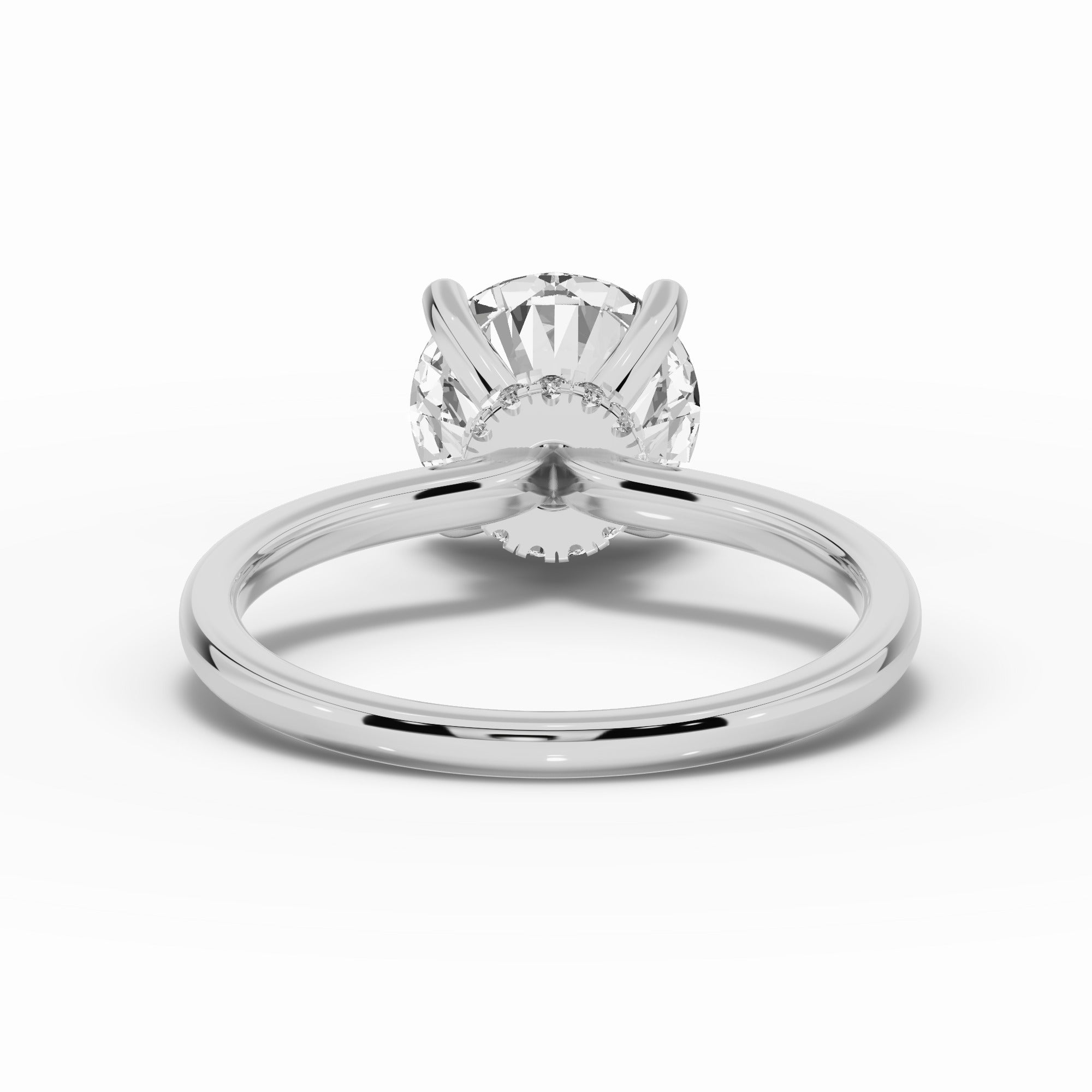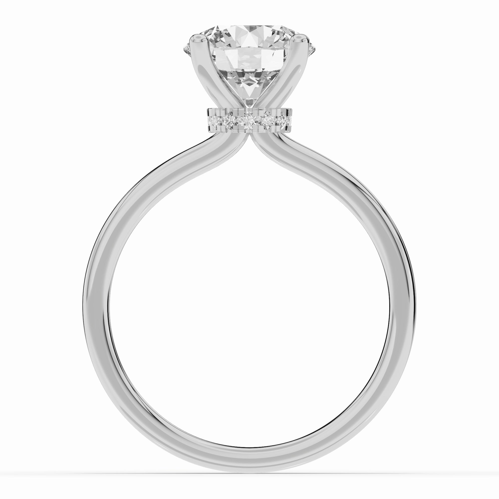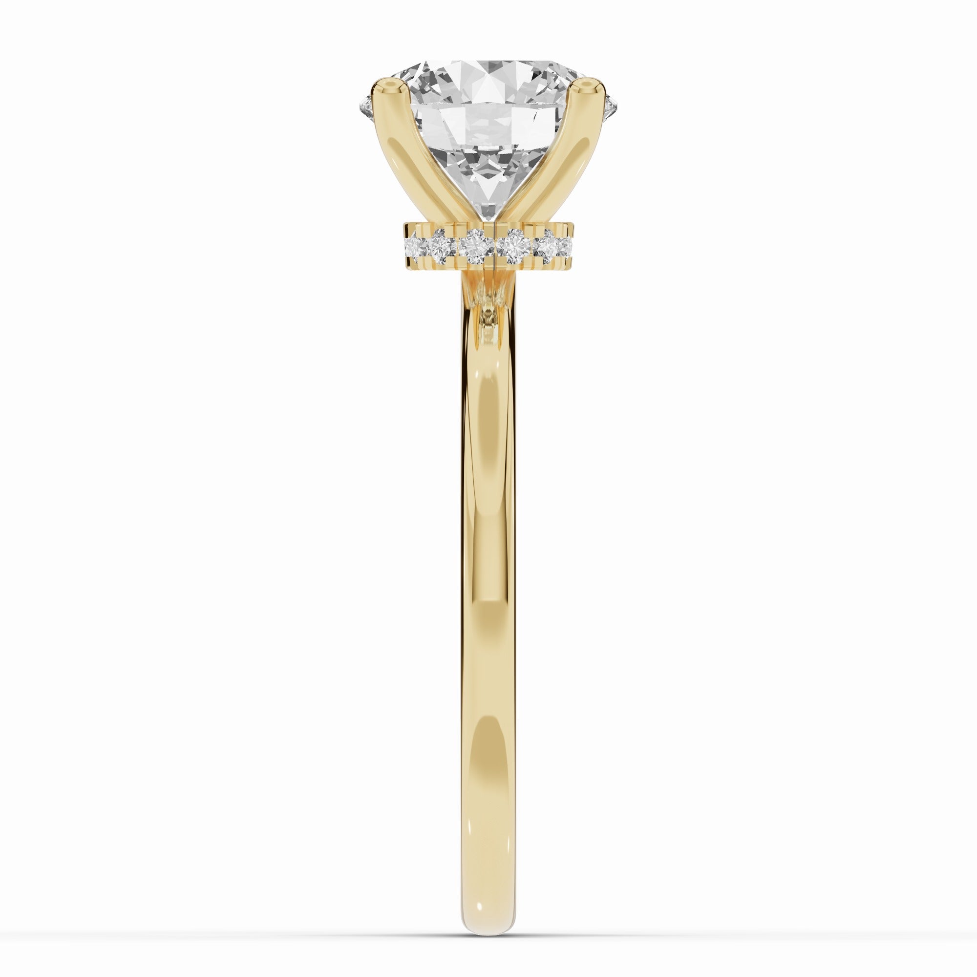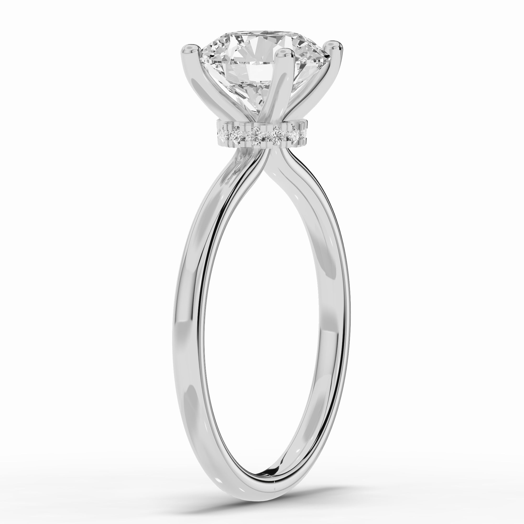 What makes this ring truly special is the delicate pavé crown beneath the center stone — a hidden circle of diamonds that glows softly like a tiara just for the wearer. With every movement, this secret detail catches the light, adding a private sparkle that elevates the design beyond a traditional solitaire.