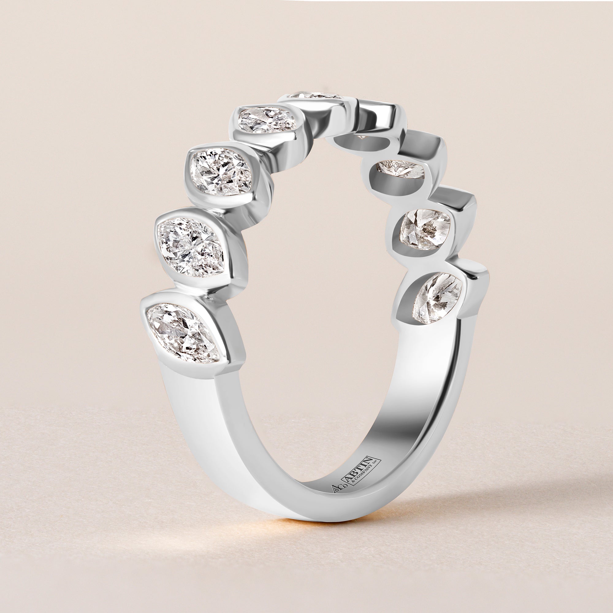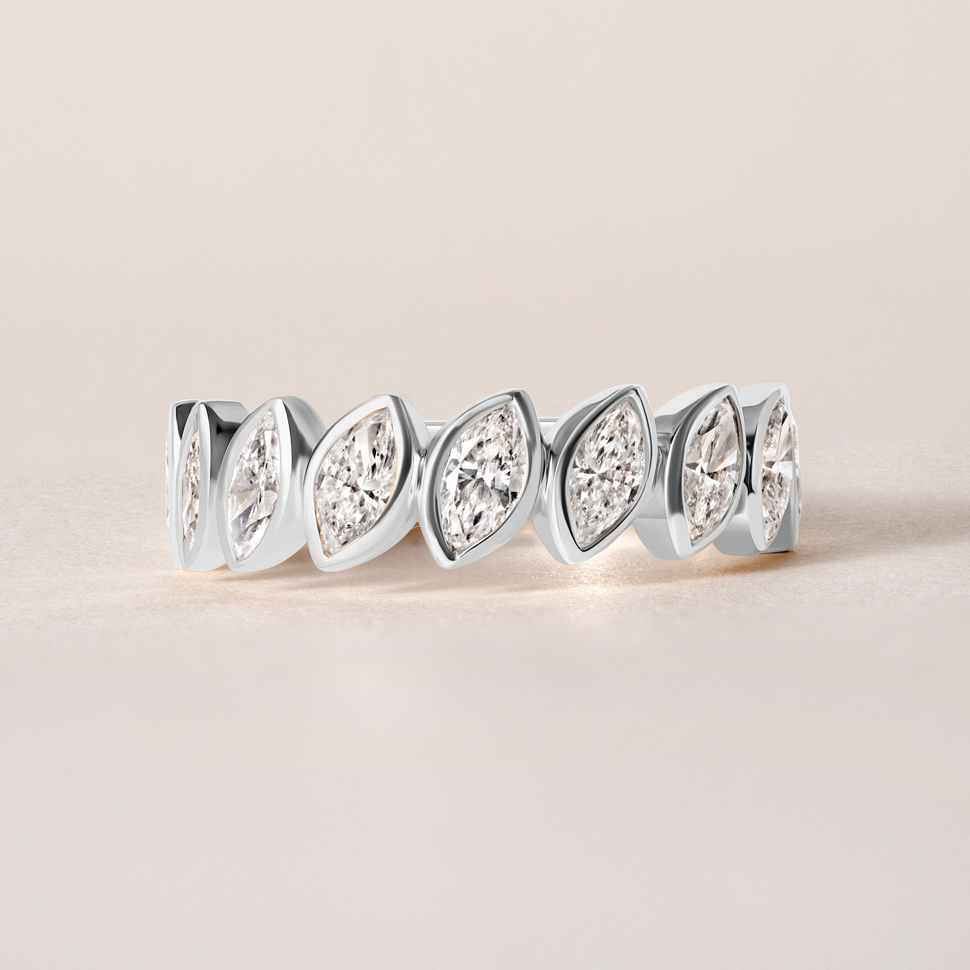 The Verte Marquise Band redefines elegance with its tilted marquise setting, offering a fresh and modern take on a classic design. Each lab-grown diamond is carefully set at an angle, creating a dynamic line of brilliance that feels sculptural and sophisticated.