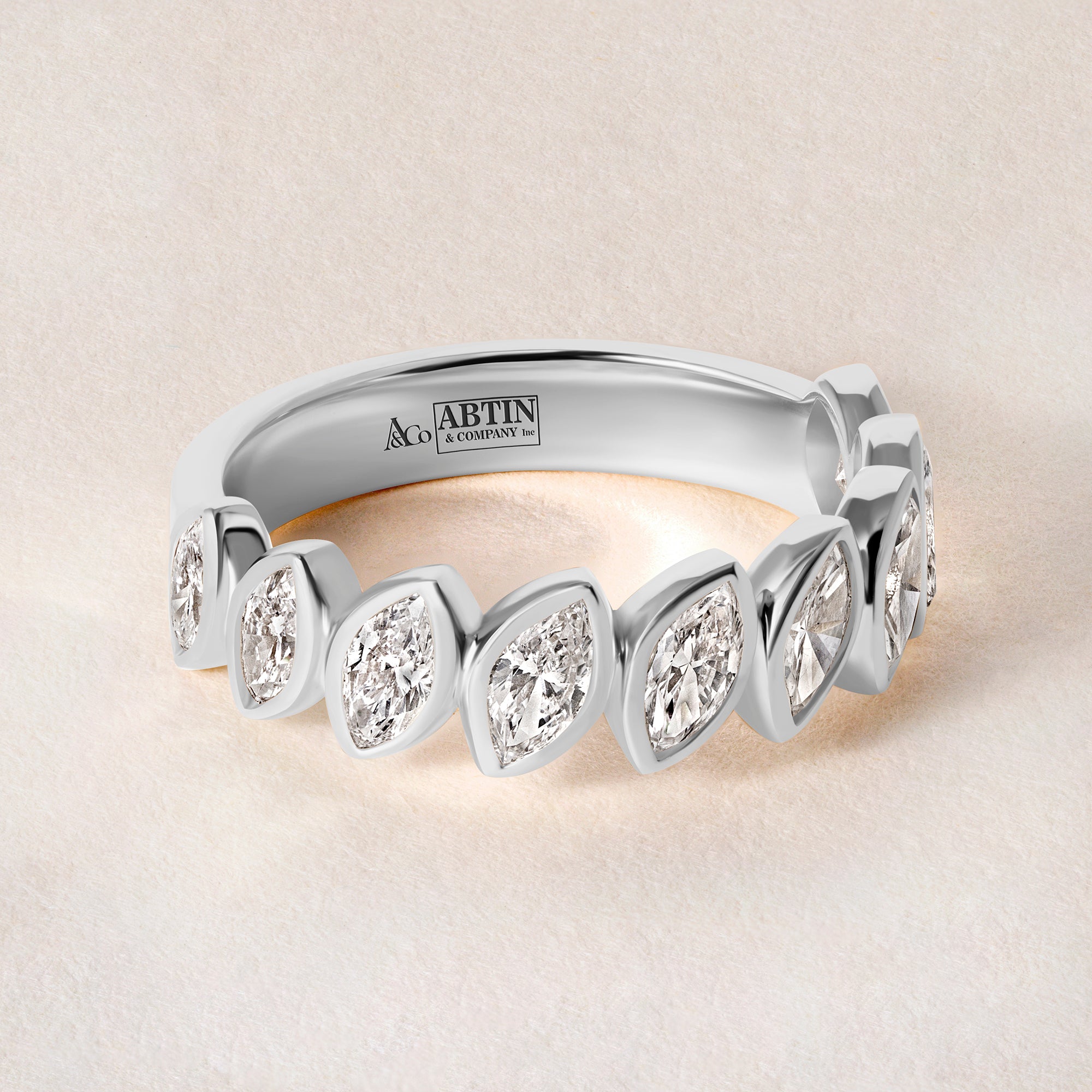 Perfect for stacking or as a standalone statement, the Verte Marquise Band is a refined choice for one-of-a-kind events, milestones, or simply adding a touch of everyday luxury.