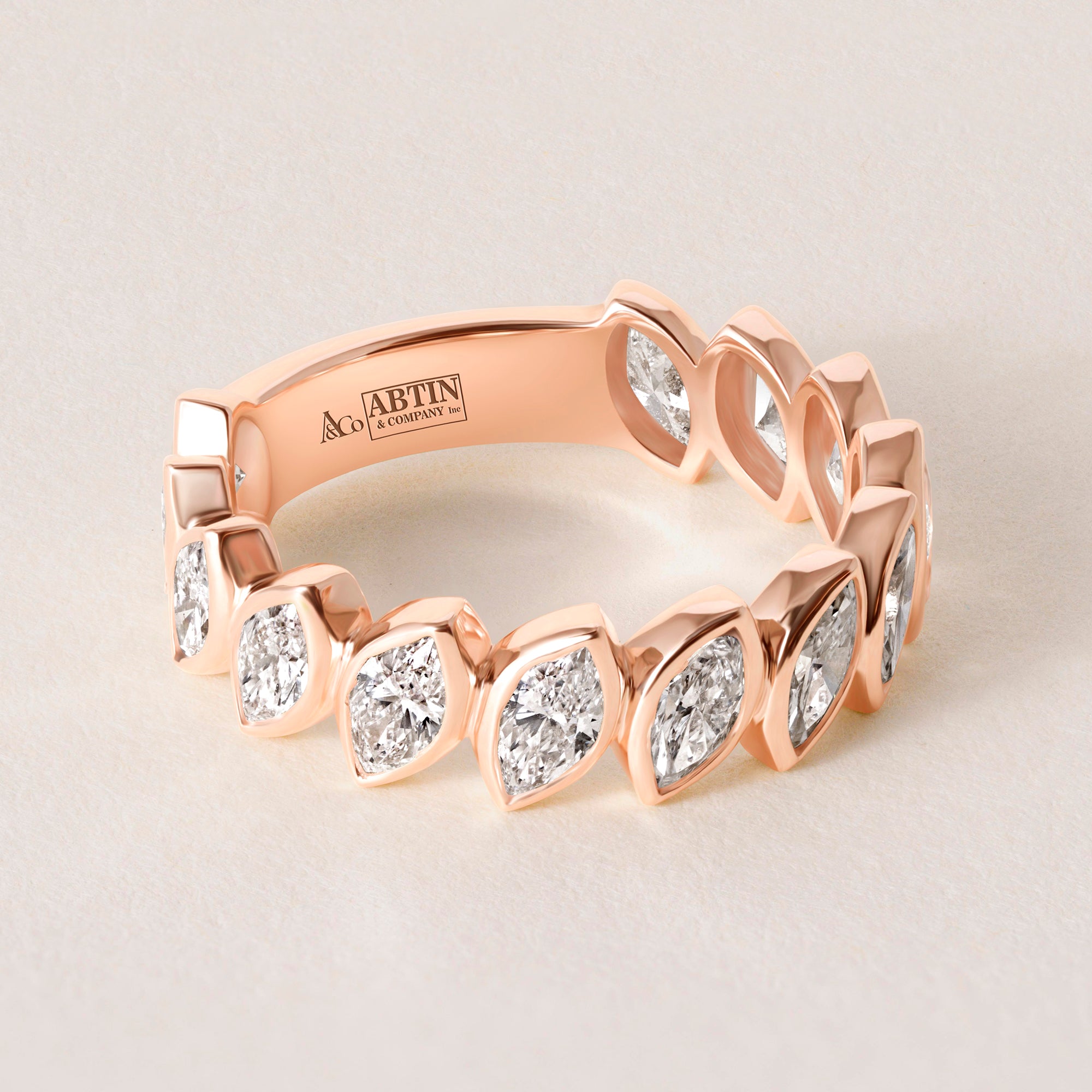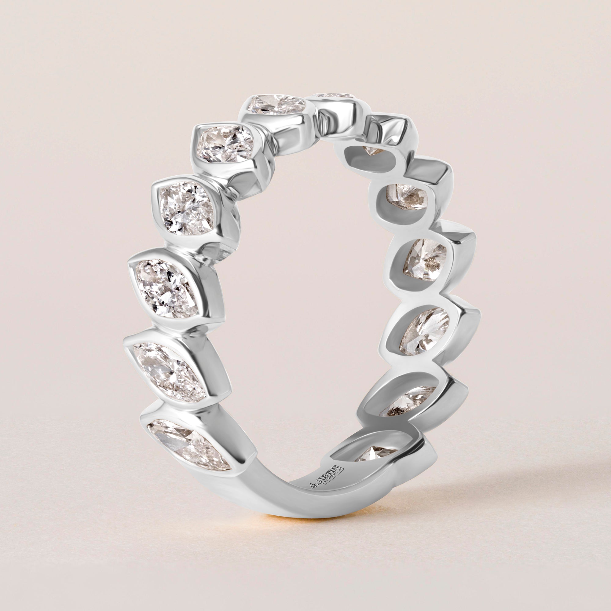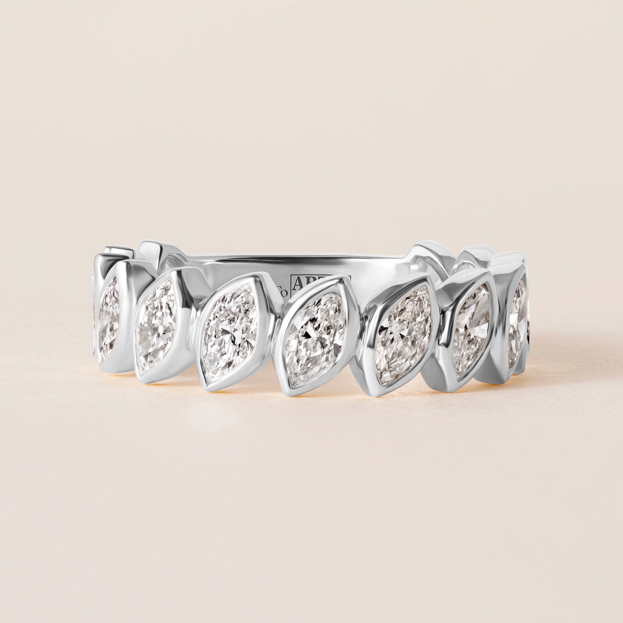The Verte Marquise Band Three-Quarter brings a modern edge to a timeless classic with its tilted marquise setting. Each lab-grown diamond is set at an elegant angle, creating a continuous line of brilliance that feels sculptural and refined.
