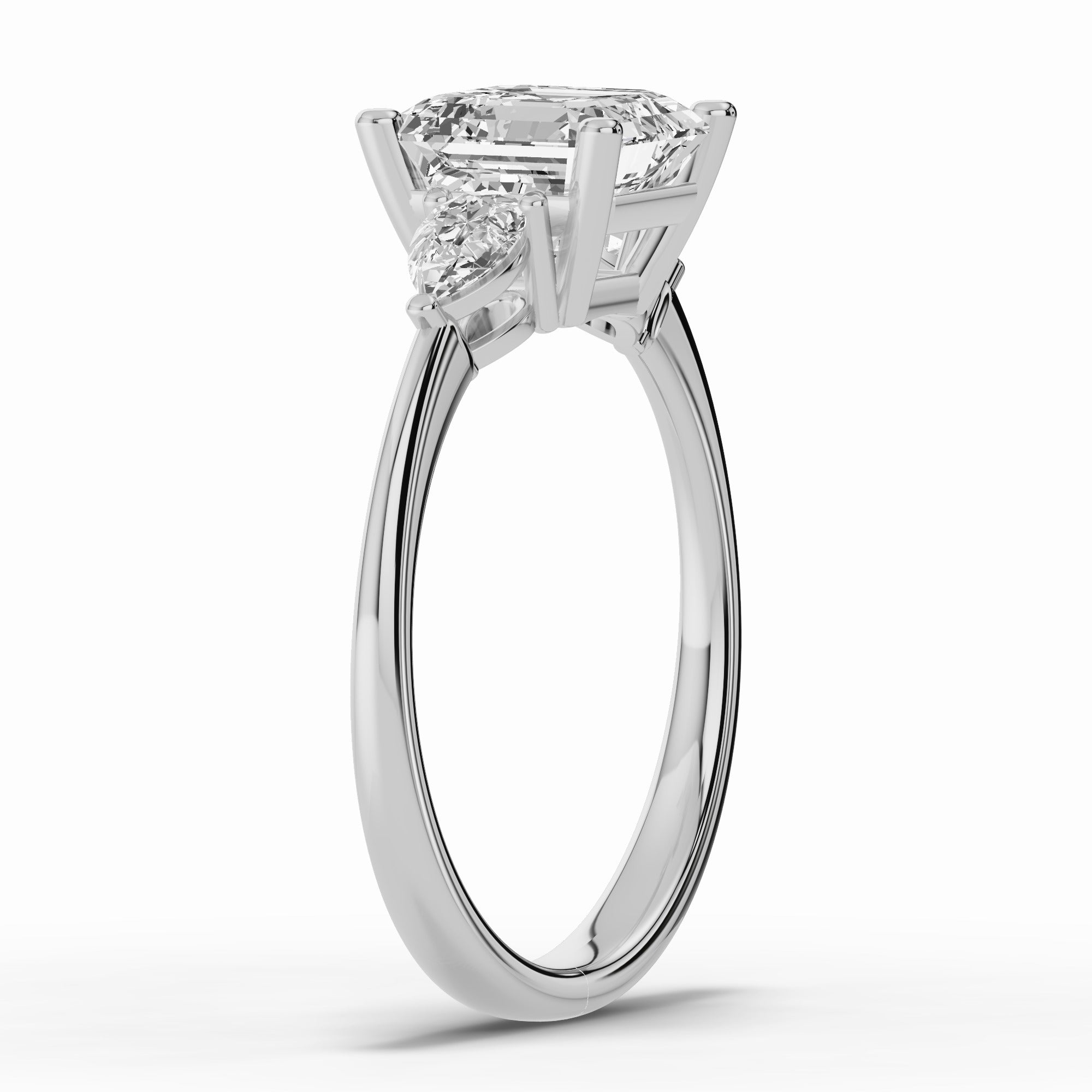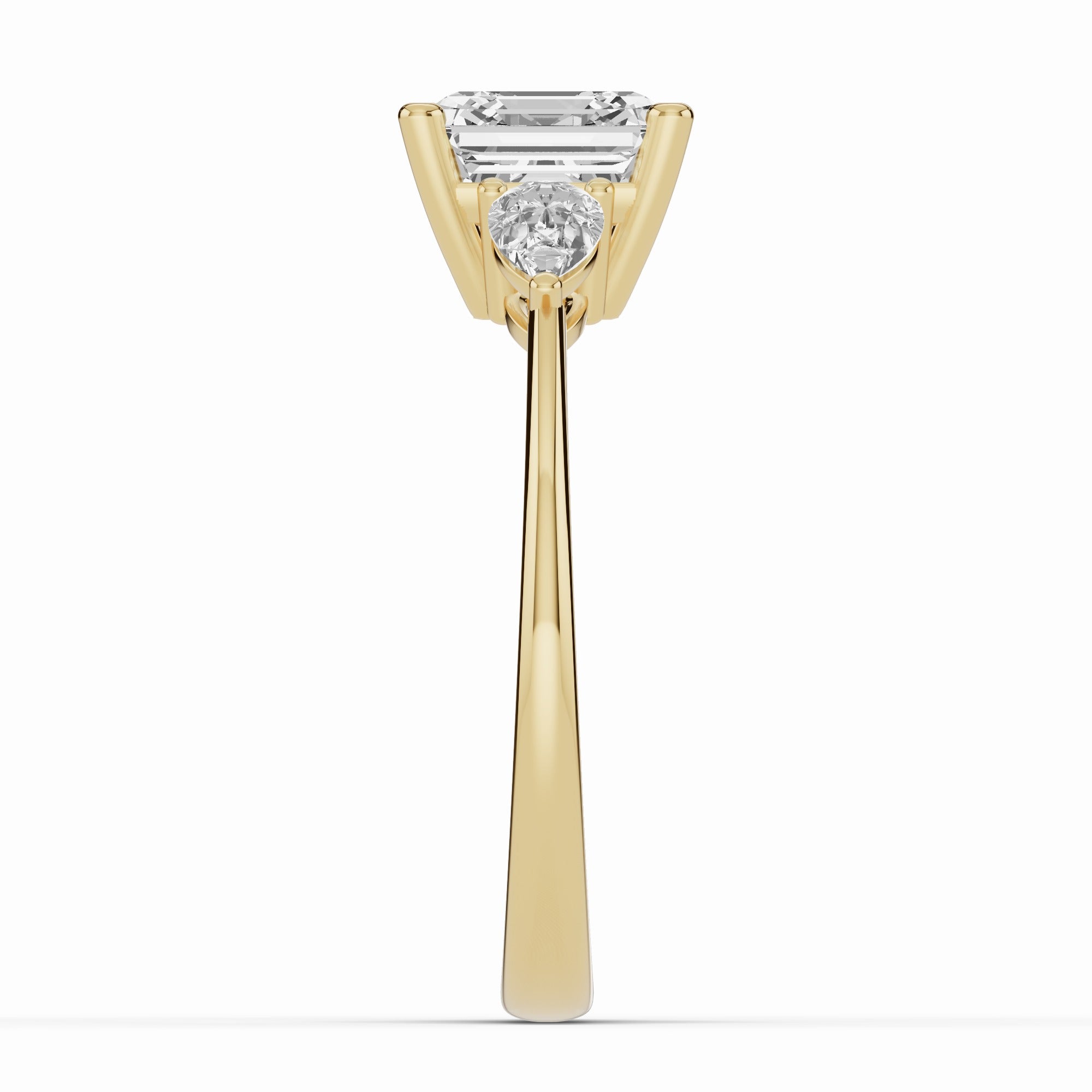 The Vionne Pear Three-Stone Engagement Ring is perfect for those who want a modern, distinctive take on a classic three-stone setting, blending European-inspired elegance with a romantic, meaningful design that will be treasured for a lifetime.