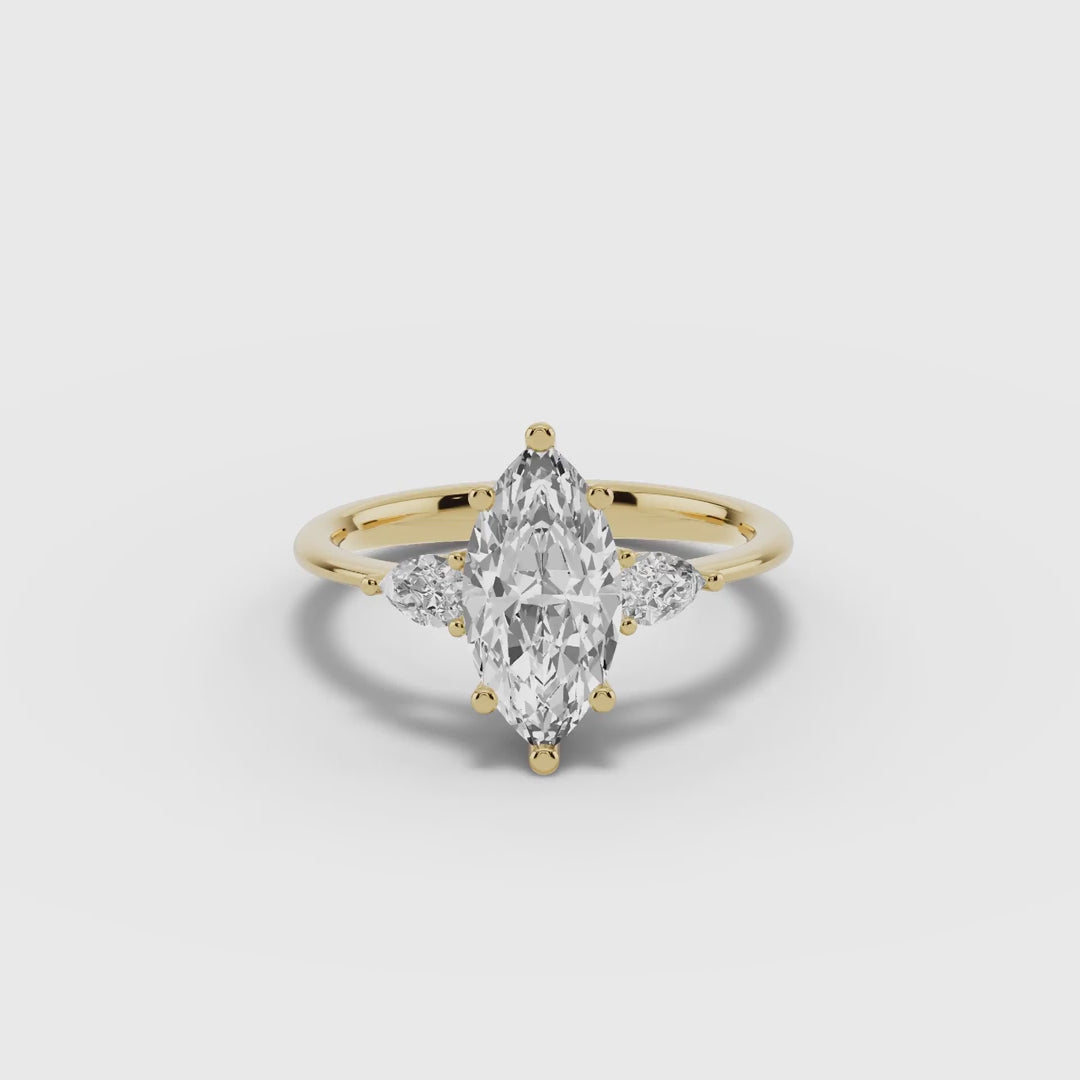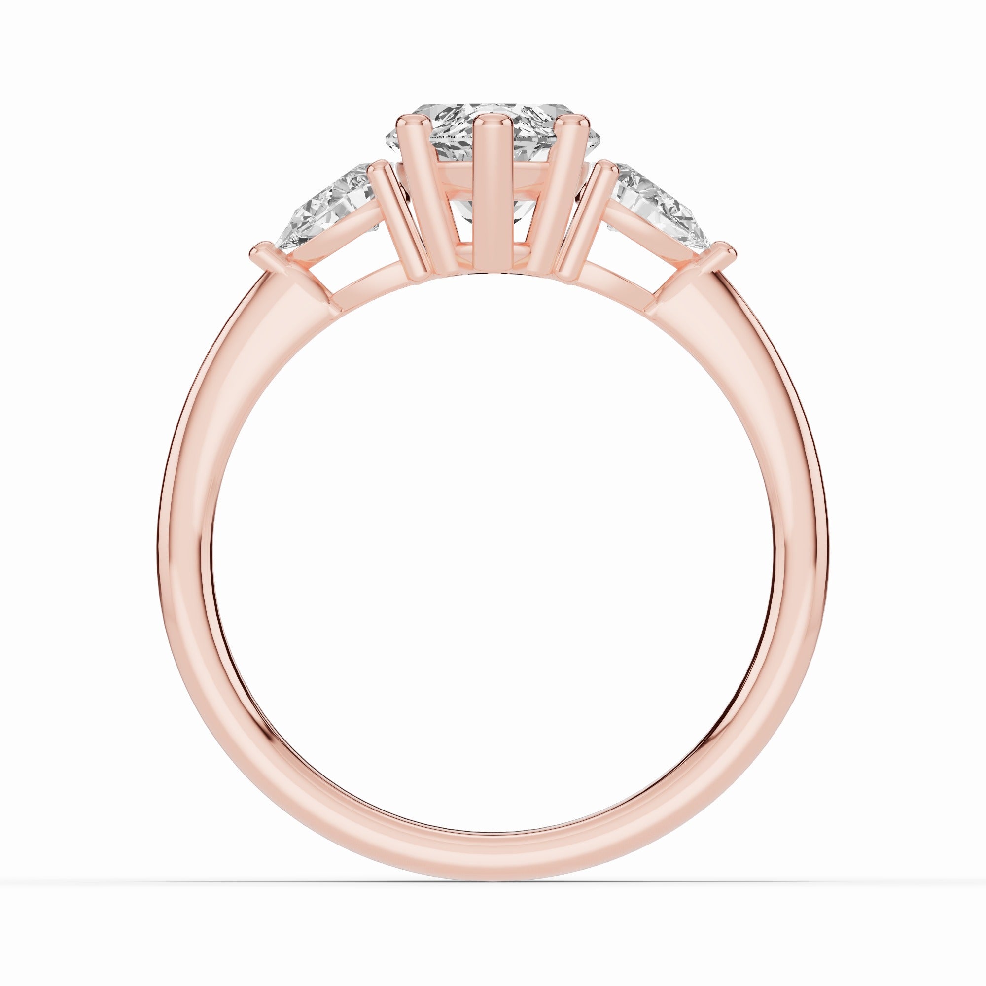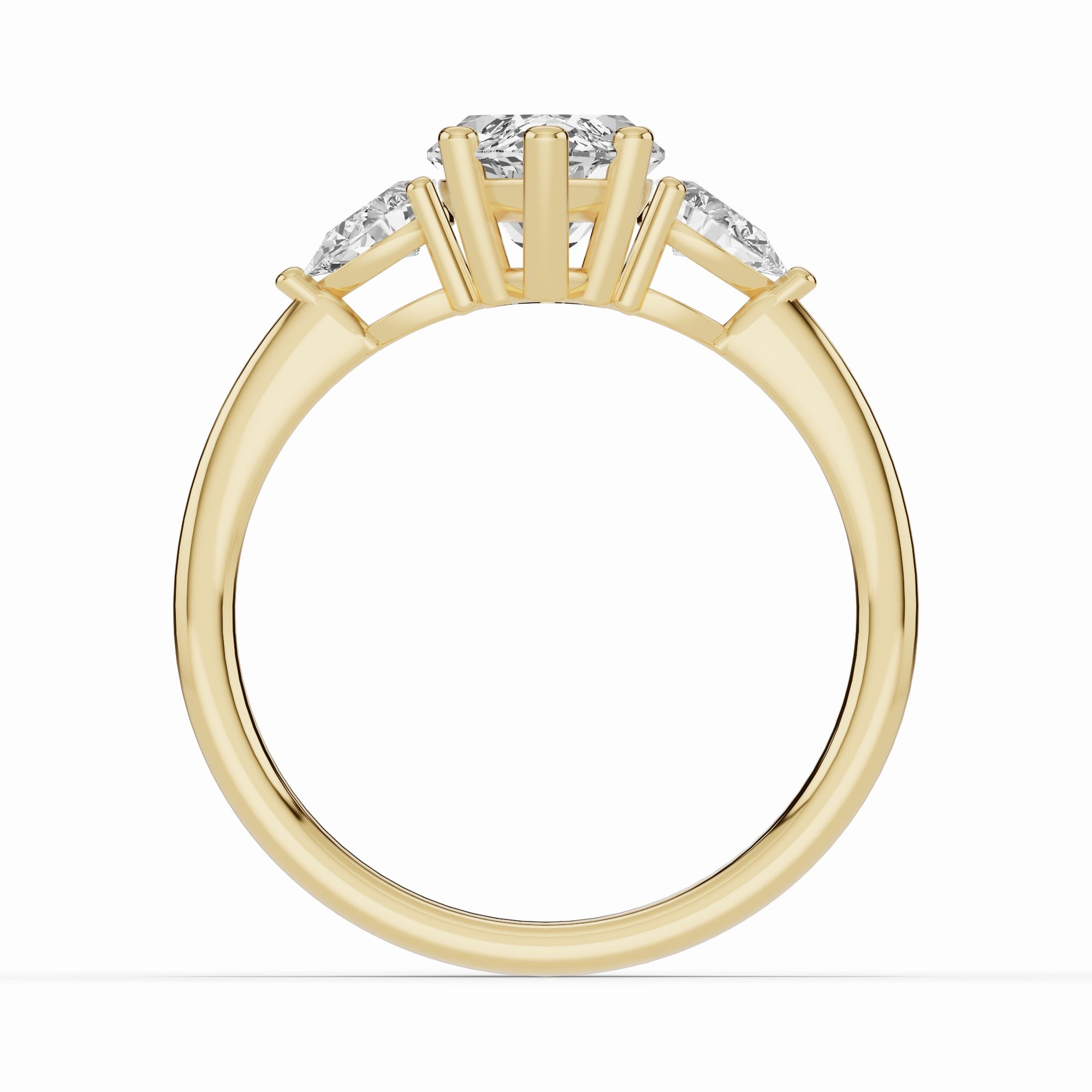 The Vionne Pear Three-Stone Engagement Ring is perfect for those who want a modern, distinctive take on a classic three-stone setting, blending European-inspired elegance with a romantic, meaningful design that will be treasured for a lifetime.