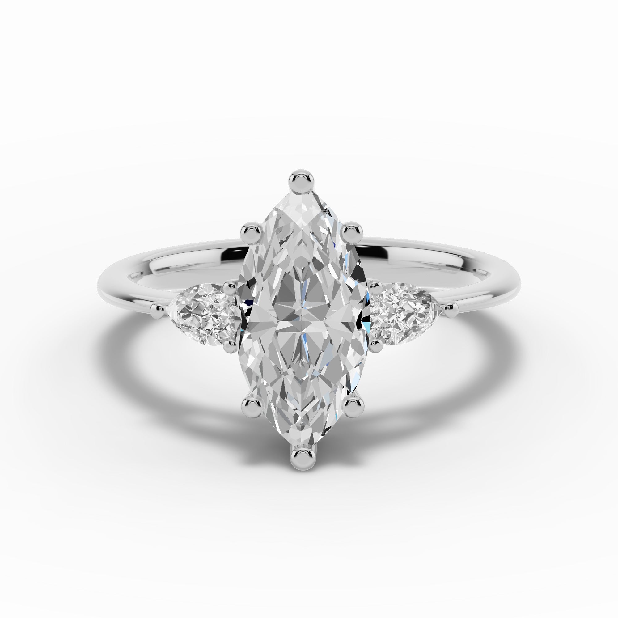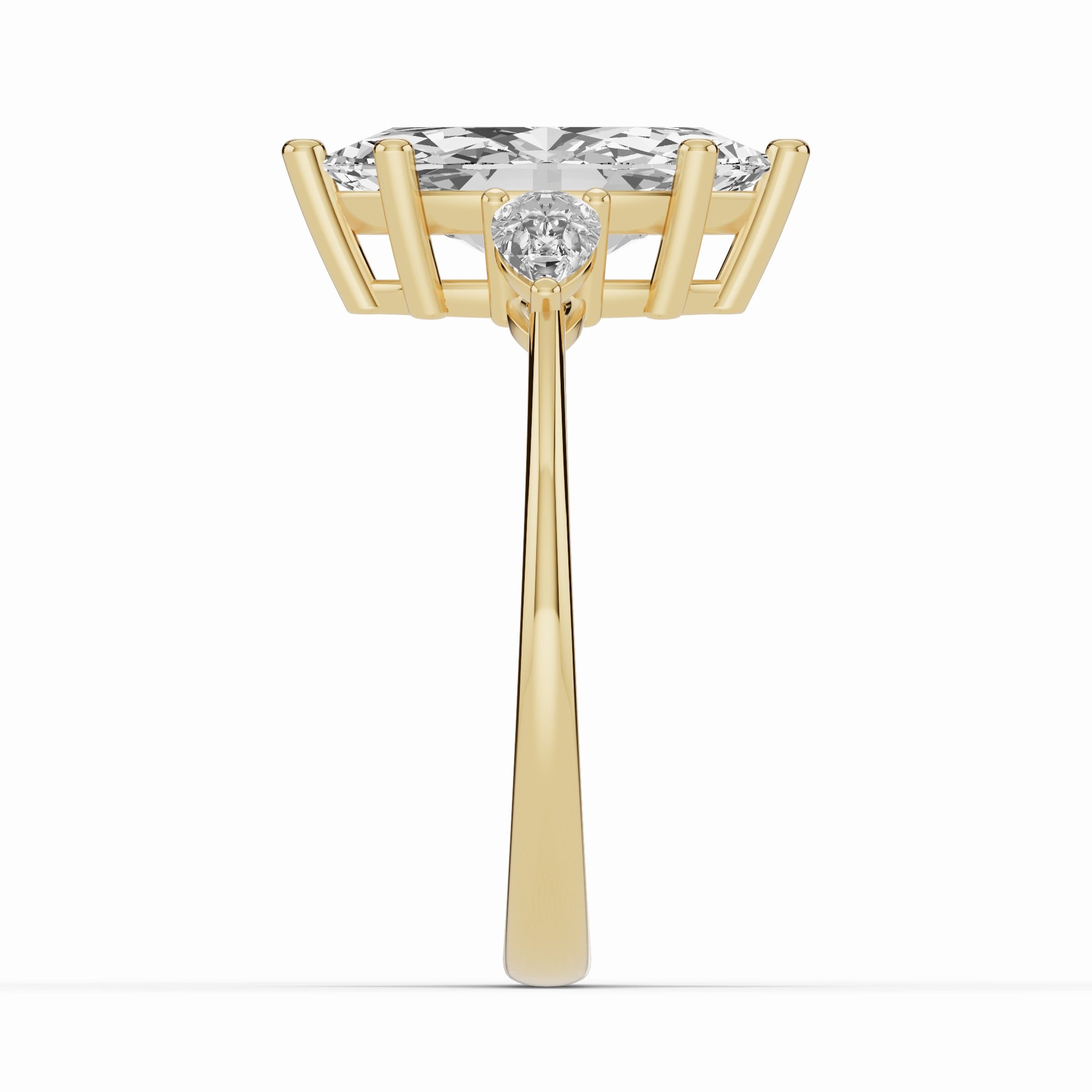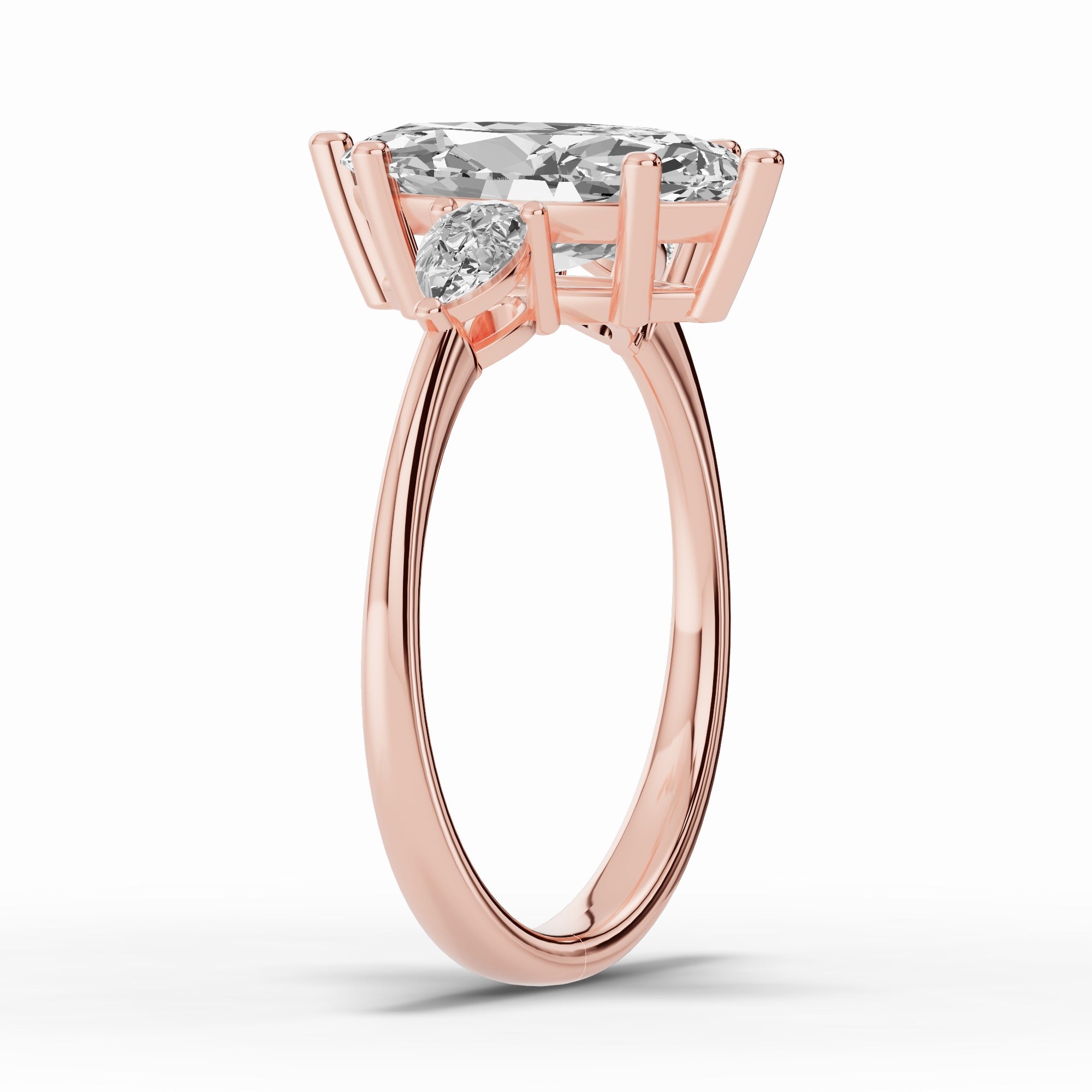 The Vionne Pear Three-Stone Engagement Ring is perfect for those who want a modern, distinctive take on a classic three-stone setting, blending European-inspired elegance with a romantic, meaningful design that will be treasured for a lifetime.